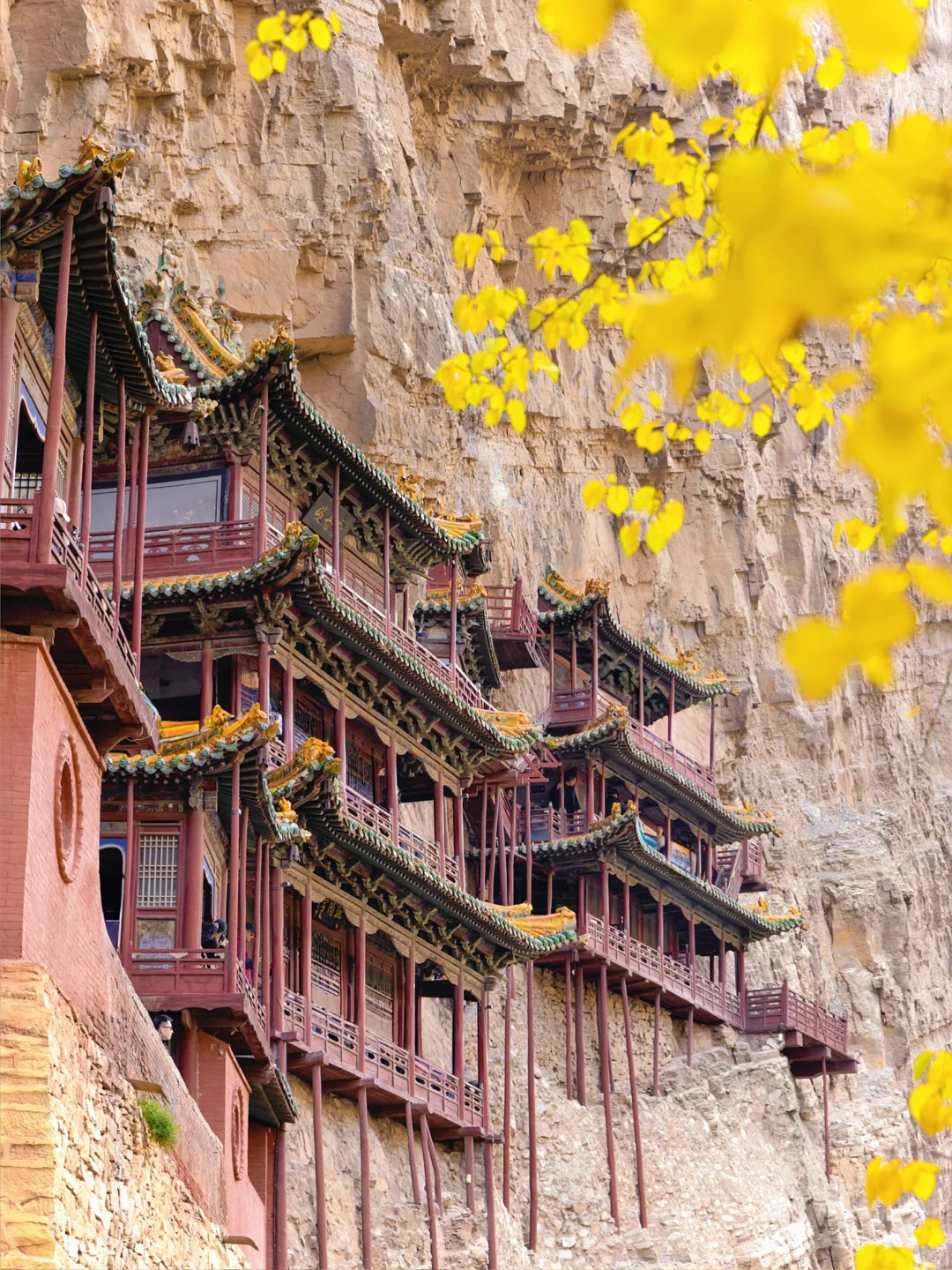 悬空寺 大同文创雪糕真的有点东西,“石屏千仞立,古寺半空悬,现存建筑是明清修缮的。登临要排队缓慢的向上,栈道很窄,上为木栈道,下为石栈道,属于全木质榫卯结构,并不是靠几十根木柱支撑,而是以插入岩壁的横梁为基础,同时与回廊栏杆上下梁柱形成框架式结构,这就是千年不倒的秘密,悬空寺木梯上的莲花图案,寓意"步步登莲,吉祥如意"也是古诗一绝,也是罕见的佛、道、儒三教合一的寺庙。
