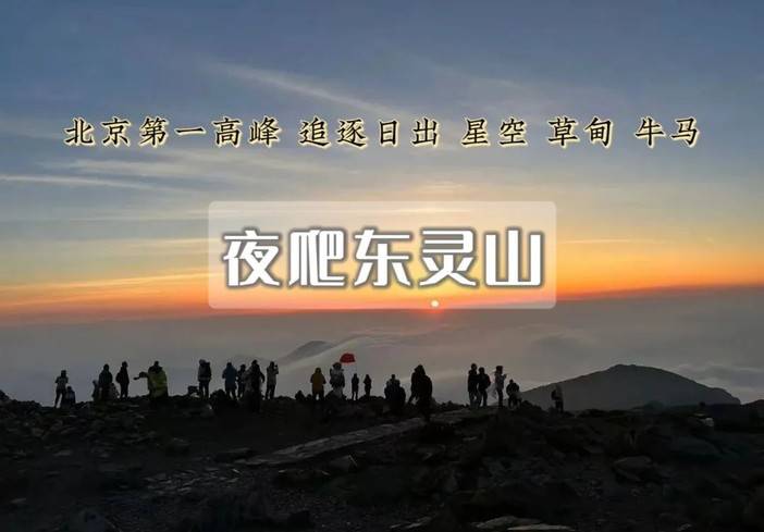 ▌ 活动强度户外徒步穿越线路(非休闲):登顶东灵山穿越,全程约9公里,全程耗时约6小时,累计爬升约800米,户外强度等级为1.0,为初中级强度,适合有一定户外经验的人群参加。线路状况:以高山草甸户外小道为主,有少部分碎石路段。徒步起点灵山停车场,主要爬升路段以草甸小道为主,路况较好。▲ 户外有风险,本活动无户外登山经验者谨慎报名!▌活动日期 每周三/周五晚/每周六晚22:00点发团▌集合信息 集合1|22:00集合...