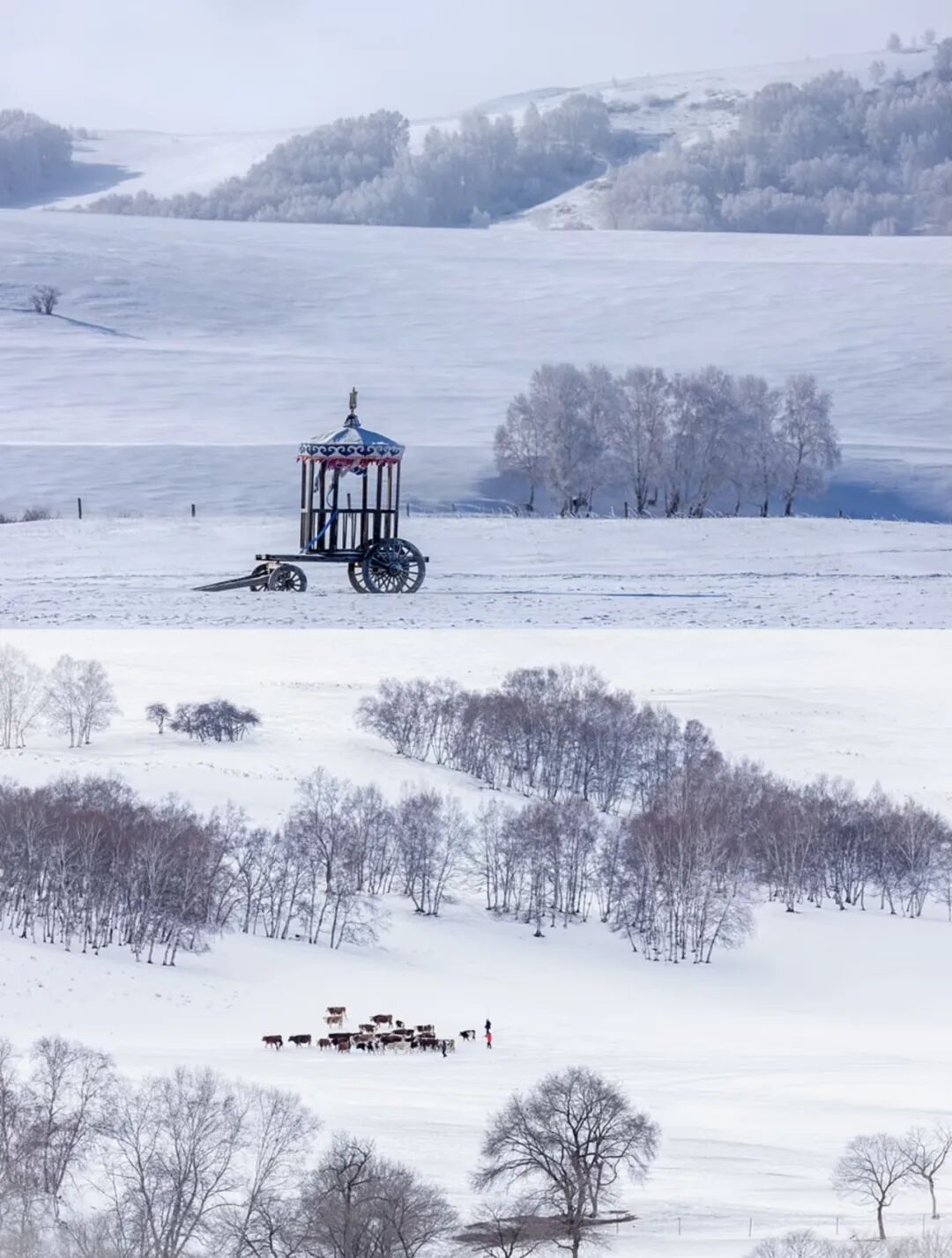- 上午|早餐后前往乌兰布统的小河口欣赏树挂(也叫雾凇)在低温的大地结晶,这就是美丽的冰花,大量的冰花落在树上,牧场的护栏上,电线上,美景从此出现。这就是大家期待的雾凇(雾凇视受天气影响较大,不一定能看到,如当天没有我们换其它地方玩耍)。