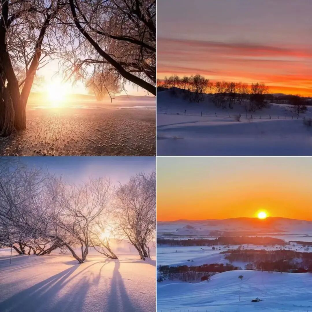 随着夕阳西下,来到【白家窝铺】看日落,乌兰布统草原的夕阳,骏马与落日的搭配、光影与自然的交融,天边渐变的红色与蓝色的融合,构成一幅精美的画卷,站在白雪皑皑的草原,欣赏着落日余晖,品味着壮美残阳,看着夕阳一点点从地平线消失,这里有雪丘之上的排排白桦林,在阳光照射下白桦树干与白雪争辉,长长的树影拖在雪丘之下层次分明,温柔铺展一幅绝美画卷。幸运的话,还能看到牧民驱赶羊群、牛群回家。