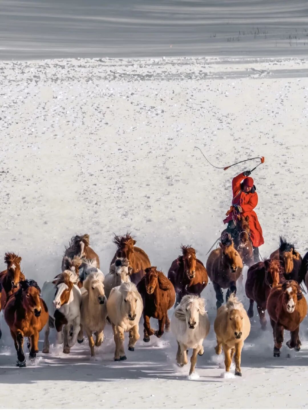 - 前往拍摄雪地狂奔的马群(费用自理),马倌会根据大家的拍摄角度让追赶着马儿奔跑在辽阔的大草原之上。冬季拍摄雪地奔马场面远远好于夏秋季节奔马的场面,拍摄马匹在雪地奔跑,鬃毛、马尾、溅雪、哈气的画面层次动感强烈,气势磅礴。