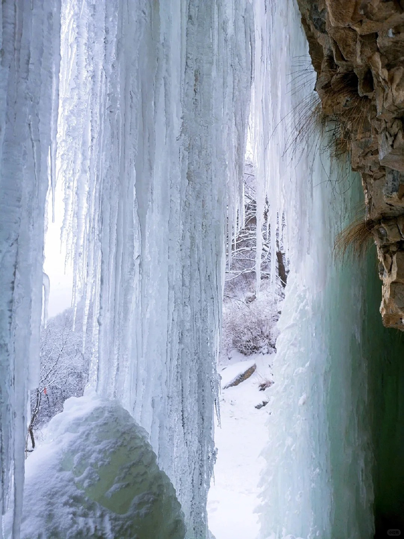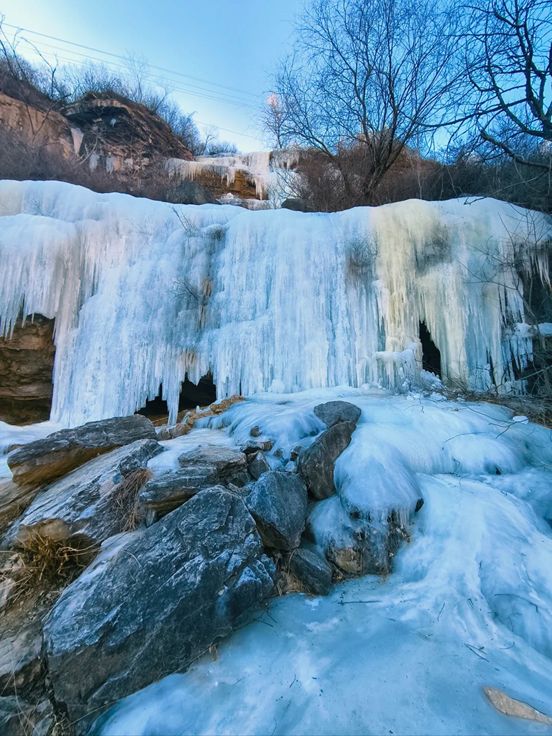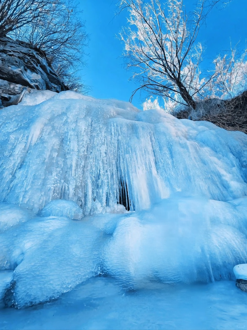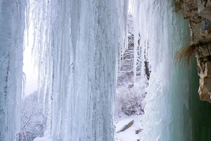 圣水峪上太湖,位于房山区韩村河镇上方山西侧的深山沟里,属圣水峪行政村的一个自然村。是个海拔500米的小山村,湖不是传统意义的湖泊意思,原意是山上流泉象水壶,所以应该叫上太壶比较贴切。冰挂冰瀑的规模比较大,山上冰瀑,如同从天而泻的银河悬挂在山腰冰瀑区,可就是这样一个名不见经传的寂寞小山村,却因大自然的鬼斧神工雕琢出令人眼花缭乱的冰瀑群,冰表面美丽晶莹,垂挂的冰瀑像个硕大的冰帘。