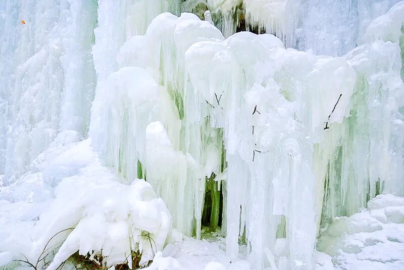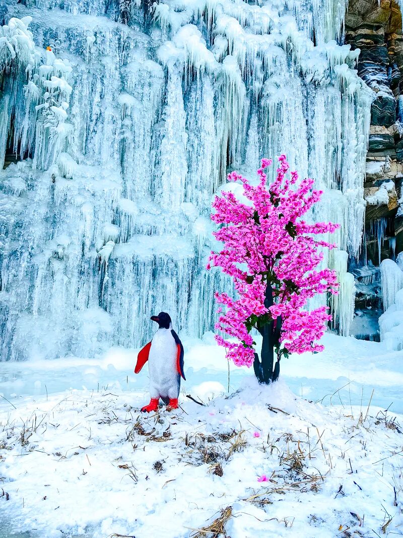 尽管是冬季,这里依然泉水不断。 厚厚的冰瀑之内,能够听到和隐约看到流动的泉水。夏季水大时,峡谷里甚至进不了人。桃源仙谷以其得天独厚的条件,变身为冬天特有的极富挑战性和刺激性的运动场地。