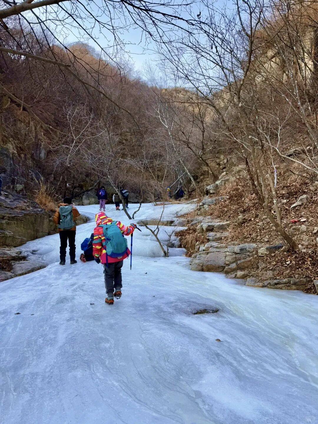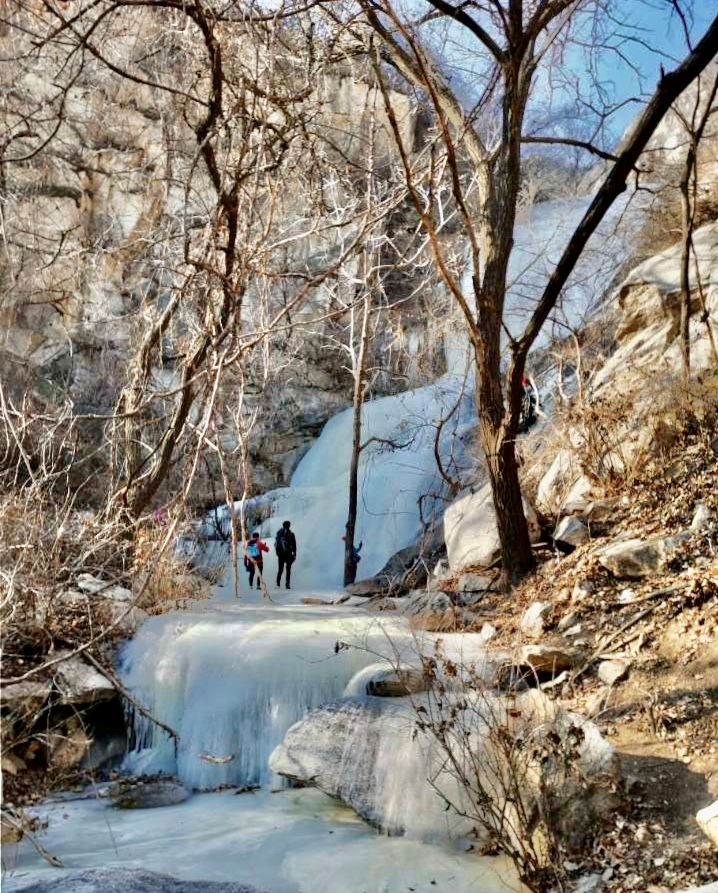 -10:00|到达徒步起点,在领队带领下徒步穿越。藤萝谷是怀柔九谷口内的九谷之一,保留有最原始的风貌,自然景观保存最完好,原始次森林,藤萝,冰河冰瀑和日照满金谷是这个山谷最著名的奇观,因为它几乎未被开发,无人工元素,纯原始景观,冬有雄伟壮观的冰瀑,多级阶梯式的冰河,自天垂落,悬挂在峭壁之上,冰层深厚,晶莹如玉。