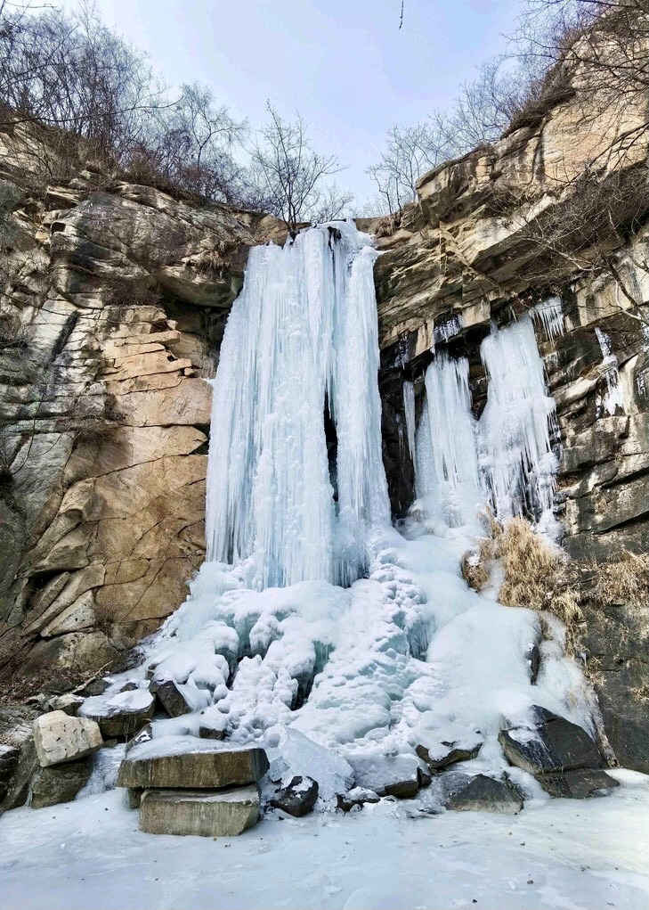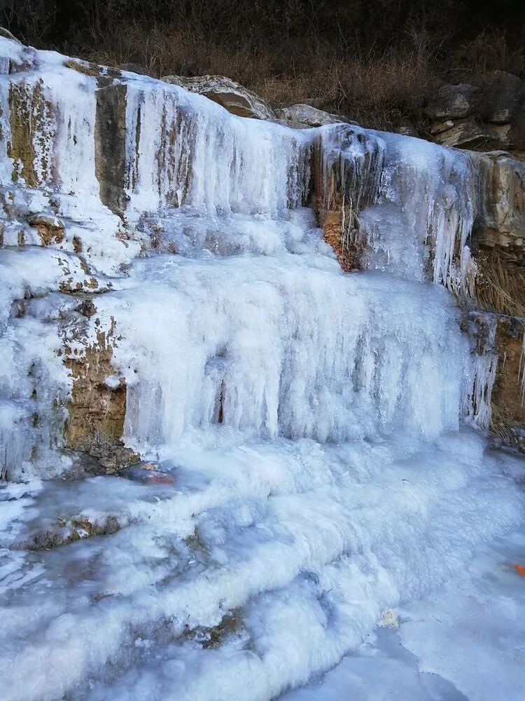 这里的瀑布规模虽不够宏大,但也足够震撼。冰面晶莹剔透,高约几米到十几米不等,天然堆砌,层叠形状各异,冰凌帘状分布,远看煞是美观。点滴的冰凌结晶更是小巧玲珑,千姿百态。这里你可以展开你的想象,让思绪随着冰的形状飞舞…你的想象空间有多大,冰凌就有多美!