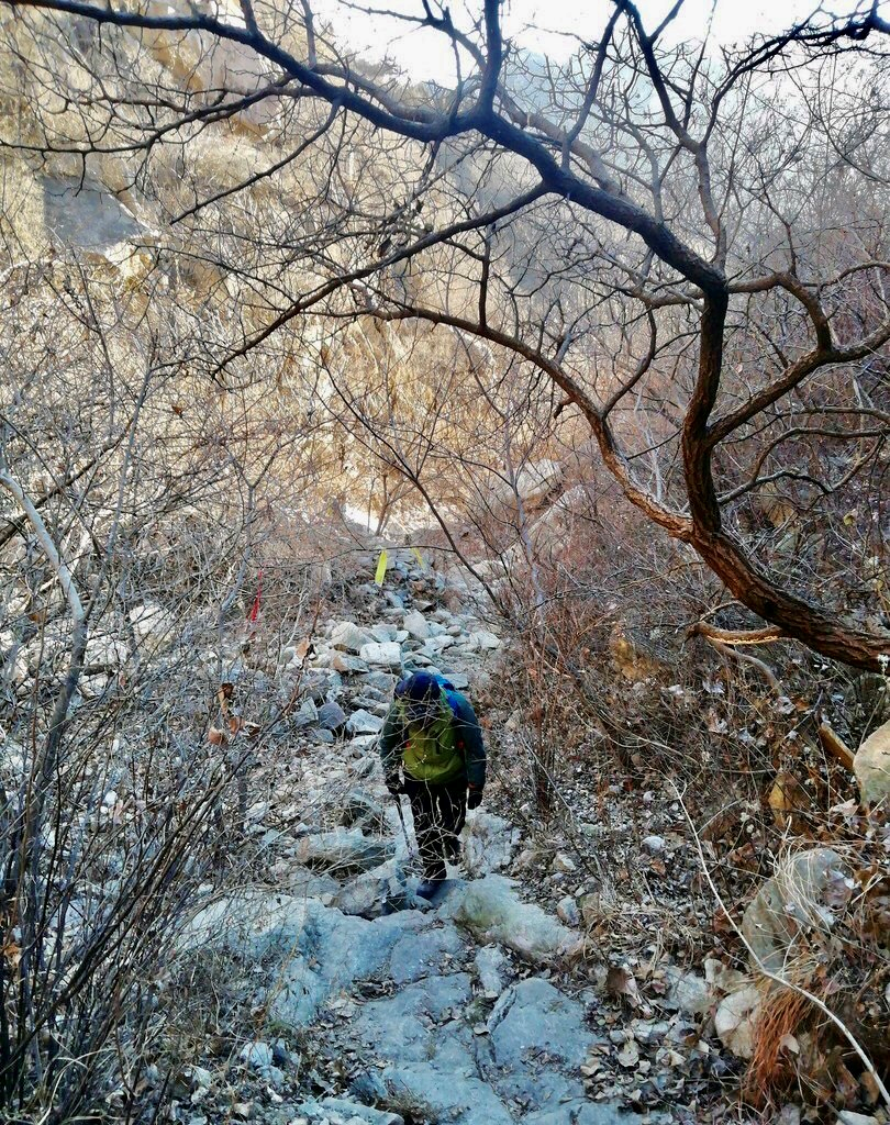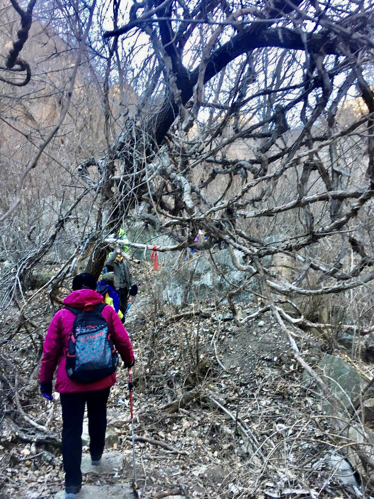 藤萝谷在怀柔百泉山风景区的南侧,去年七月九号穿越了百泉山及其风景区,感受到了百泉山的小家碧玉之美。今天的藤萝谷也是带着未知与期待来的。冬日里的山沟,万木萧条,干枯的植被却密密麻麻,这里涧沟不够宽大,而植被、山林覆盖率却极高,也没有人为开发,保持着良好的原始生态环境。