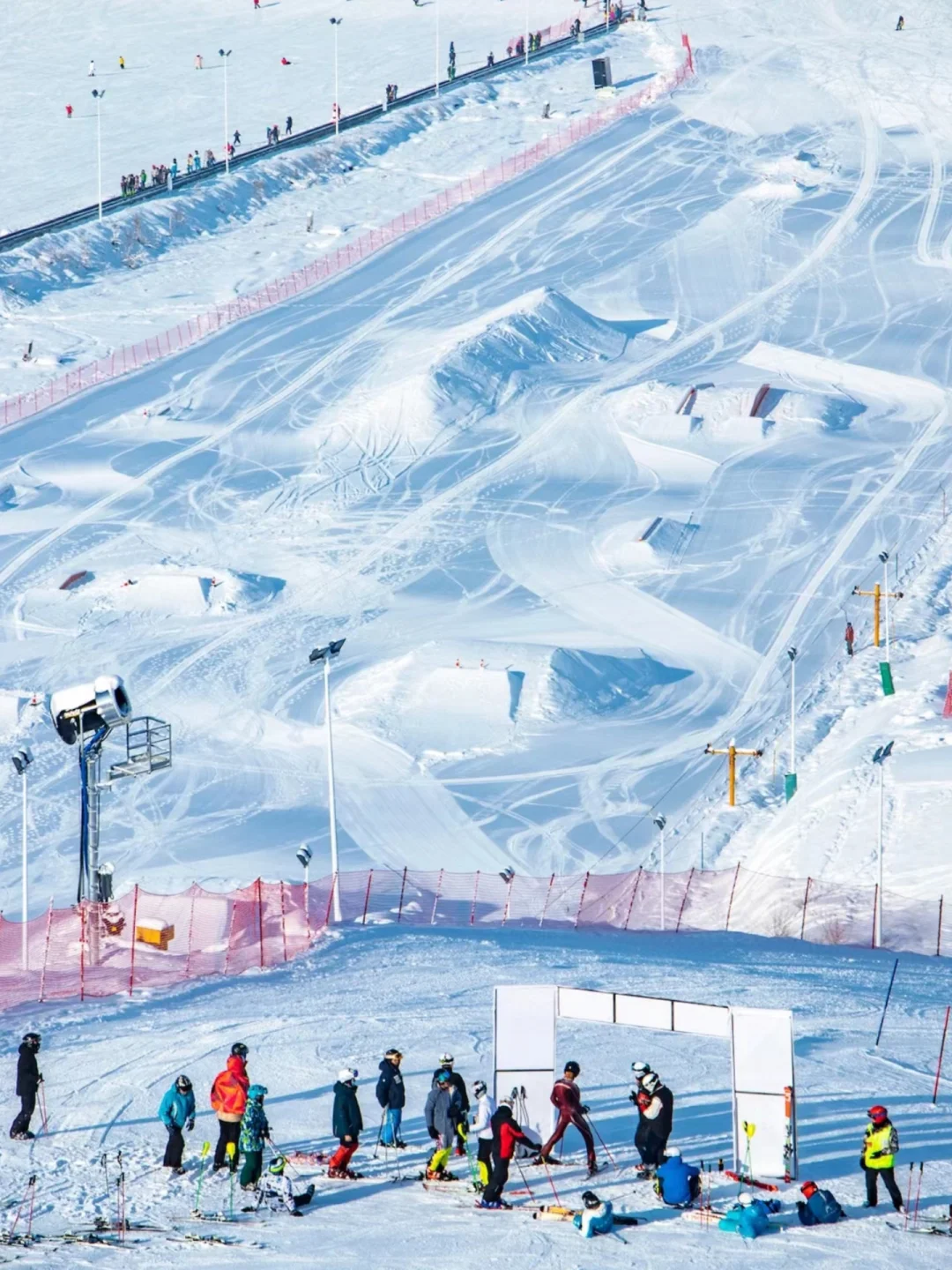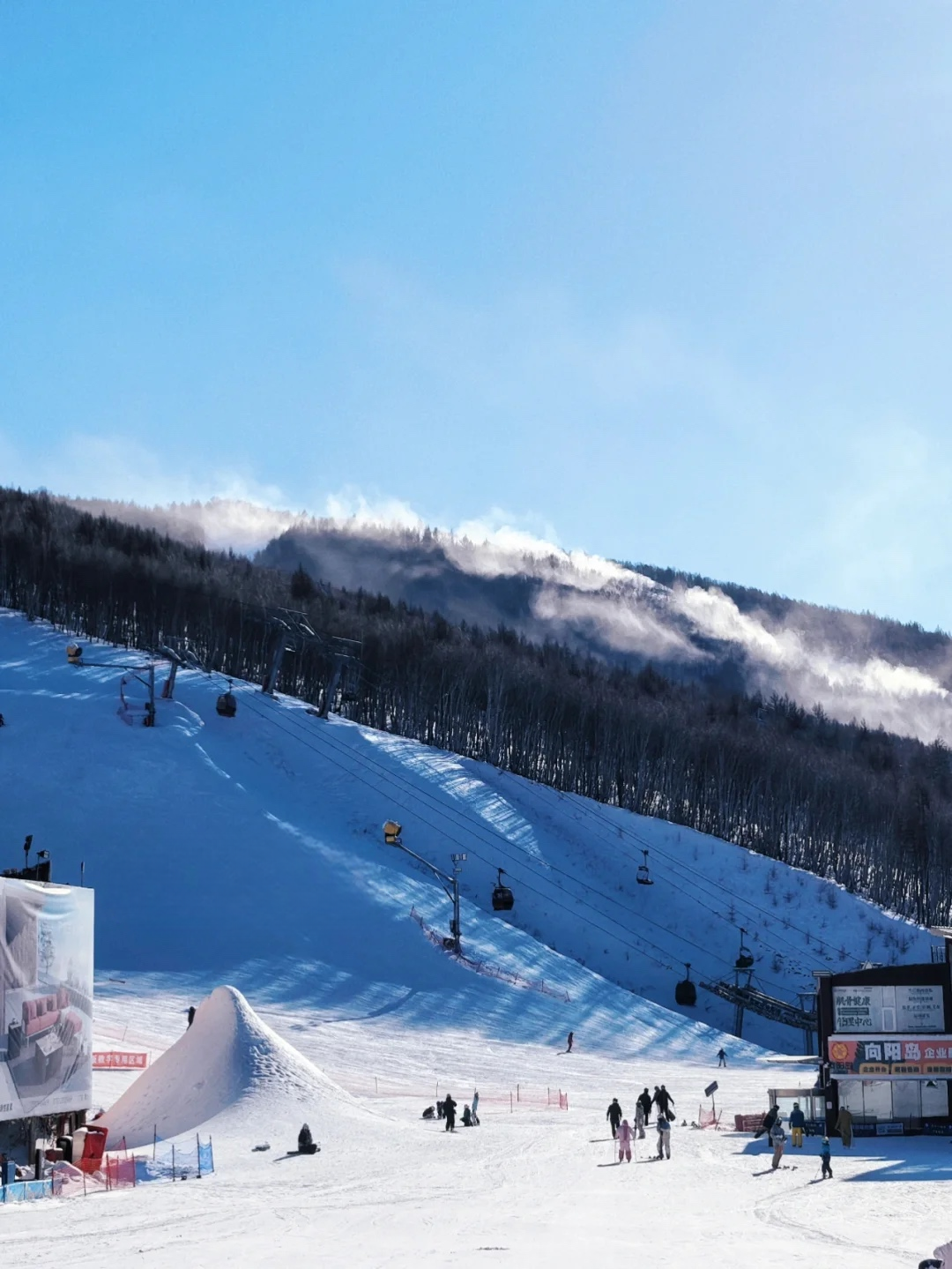 太舞滑雪场位于崇礼最高山峰玉石梁(海拔2160米)上,视野开阔,可以俯瞰整个山谷。尤其是在山顶,你可以看到远处连绵起伏的山脉,在夕阳的映衬下显得格外壮丽。无论是初学者还是高手,都能在这里找到适合自己的雪道。而且,雪场的设施齐全,服务周到,确保你能有一个愉快的滑雪之旅。