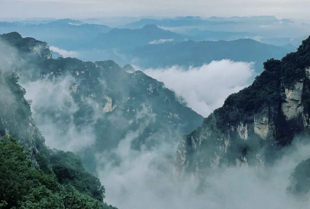 险峰林立、峭壁深谷、怪石峥嵘