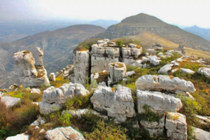 怪石林涞水周边的山峰,为太行山北部余脉,这里的山石颜色和传统的太行山特有赭红色砂页岩明显不同,基本为白色,但是仍会形成峰林、怪石、绝壁、峡谷、瀑布等景观,龙宫山这里怪石林立,形状各异,武士,怪兽,狮身人面……歪而不倒,挺拔耸立,造型独特,甚是壮观。