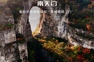 蚕姑坨顶上的南天门是蚕姑坨最有名景点,形似巨大的手掌状。传说,远古时代黄帝妻子蚕姑修练成仙后,一掌破峰成"门",由此乘车飞去。而那"门扇"则被推到黄河里去了,如今手指印尚还清晰可辩,"门"的下边还有车轱辘印。