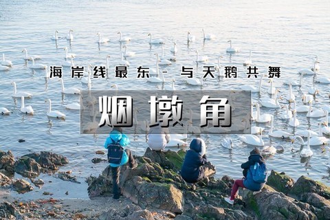 烟墩角 万顷天海碧,一湾雪花白;渔船扬帆去,鸿鹄展翅来。这便是烟墩角所拥有的壮美景象。每年十月份以后,大批的天鹅迎着西伯利亚的冷空气逆风飞翔,不远千里万里,来到荣成过冬。成千上万只野生的大天鹅从遥远的西伯利亚、贝加尔湖、新疆和内蒙成群飞到荣成的海湾和湖泊栖息越冬。烟墩角天鹅湖就是其中之一,烟墩角也因此有了“天鹅村”的美誉。
