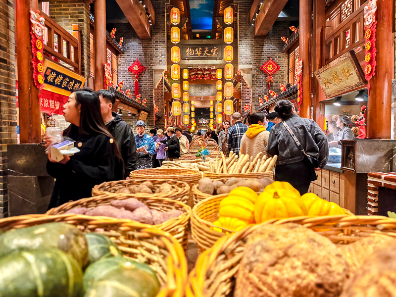 一层为美食体验街区,涵盖150余种极具唐山风味的特色小吃和10余种非遗传承人美食,以“五街两巷一条河一世界”这一条概念滦河贯穿其中,两个小巷穿插连通主街,形成小镇式街巷体验。二层楼主要为民俗老物件展区、百姓府邸院落中餐、燕山书院、撒欢儿乐园、遥记图书馆、祈福长廊、八旗贝勒爷宫廷火锅七大区域。三层主要为大唐州府精品中餐、小山儿西洋餐、文化长廊;四至八层为五星级标准唐山宴文旅主题酒店。