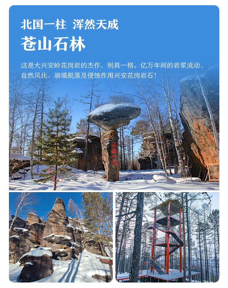 √ 车程13:00-13:30,乘车前往大兴安岭花岗石地貌【苍山石林】,