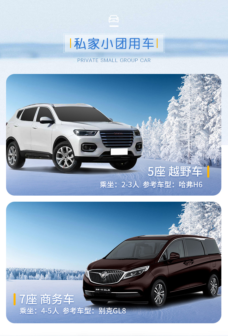 4.交 通:2-3人SUV越野车、4-5人7座GL8、6人15座商务,全程包车费用、过路费,燃油费,停车费,驾驶员服务费、食宿费等