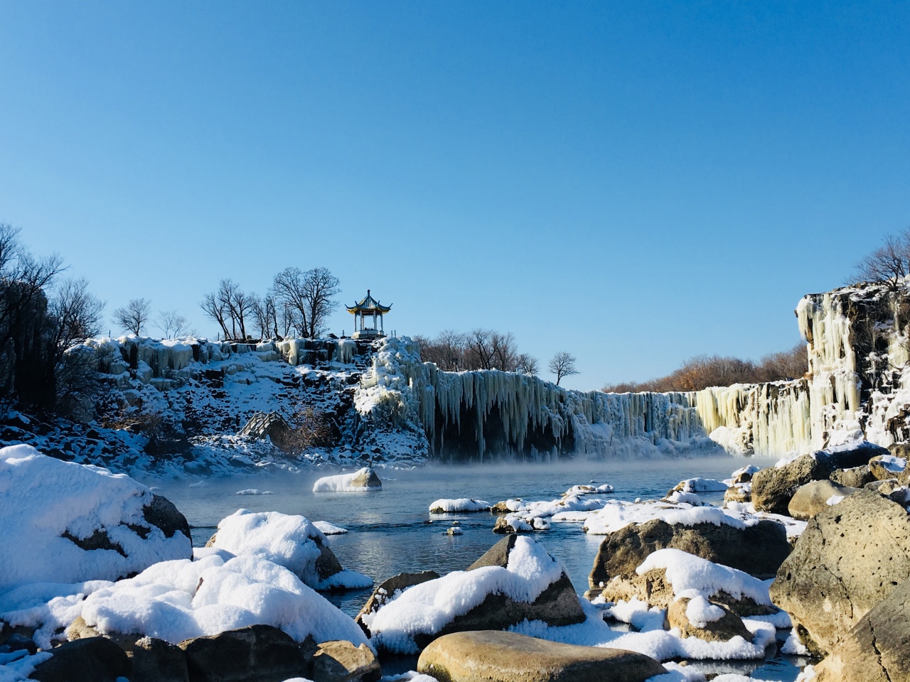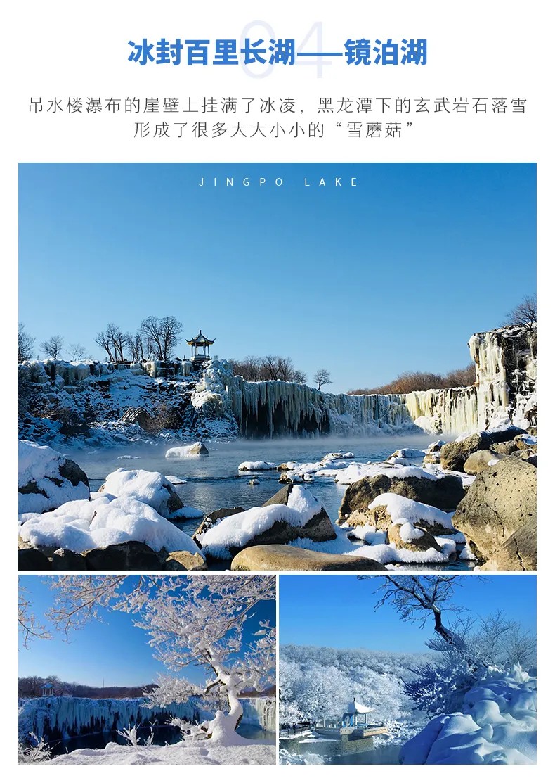 √ 车程08:30-11:30,出发前往冰封的百里长湖【镜泊湖景区】,