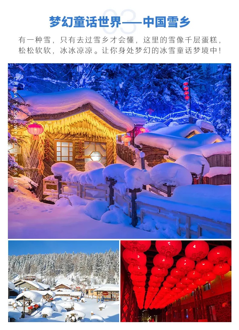 冰雪旅行,是美好而浪漫的事情。在冰天雪地中,您可以欣赏着雪花飘落,体验着雪地打滚、打雪仗、堆雪人……
