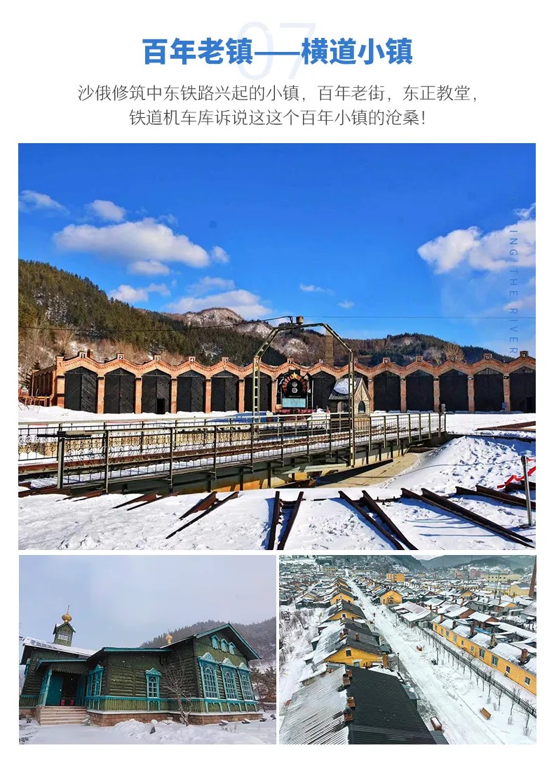 √ 游玩10:30-12:30,俄式风情犹存的百年小镇【横道河子小镇】(游览约2小时),这里具有悠久的历史与俄罗斯文化脉络,具有“花园城镇”之称。这里亦是电影《萧红》、电视剧《悬崖》《闯关东》《红楼梦》的拍摄基地!在俄式老街中我们可以参观「圣母进堂教堂」、「中东铁路机车库」和「油画艺术村」!同时,您也可以在老街上留下来张张文艺清新范的小照片哦!(游览时间:2小时)