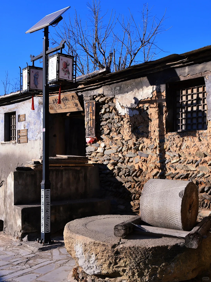 水峪村以"三绝"闻名:128盘石碾散落巷陌(获吉尼斯认证)、百米红叶栈道悬于明代梯田之上、百年纱灯戏仍在古戏台演绎。村内现存132座明清院落,其中杨家大院的石雕"麟吐玉书"堪称华北民居精品。深秋时节,古村与层层黄栌、百年柿树共同构成泼彩画卷。
