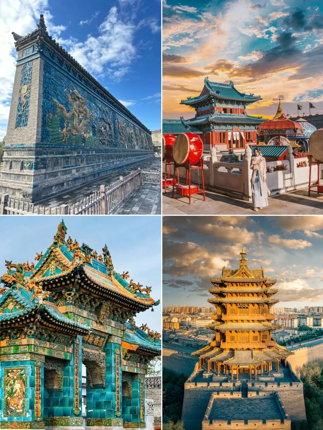 - 下午跟随领队进入【大同古城】建议游览路线:华严寺-纯阳宫-钟楼-四牌楼-鼓楼-善化寺-帝君庙-九龙壁-法华寺-東南邑;(部分小景点需要门票大家自理)