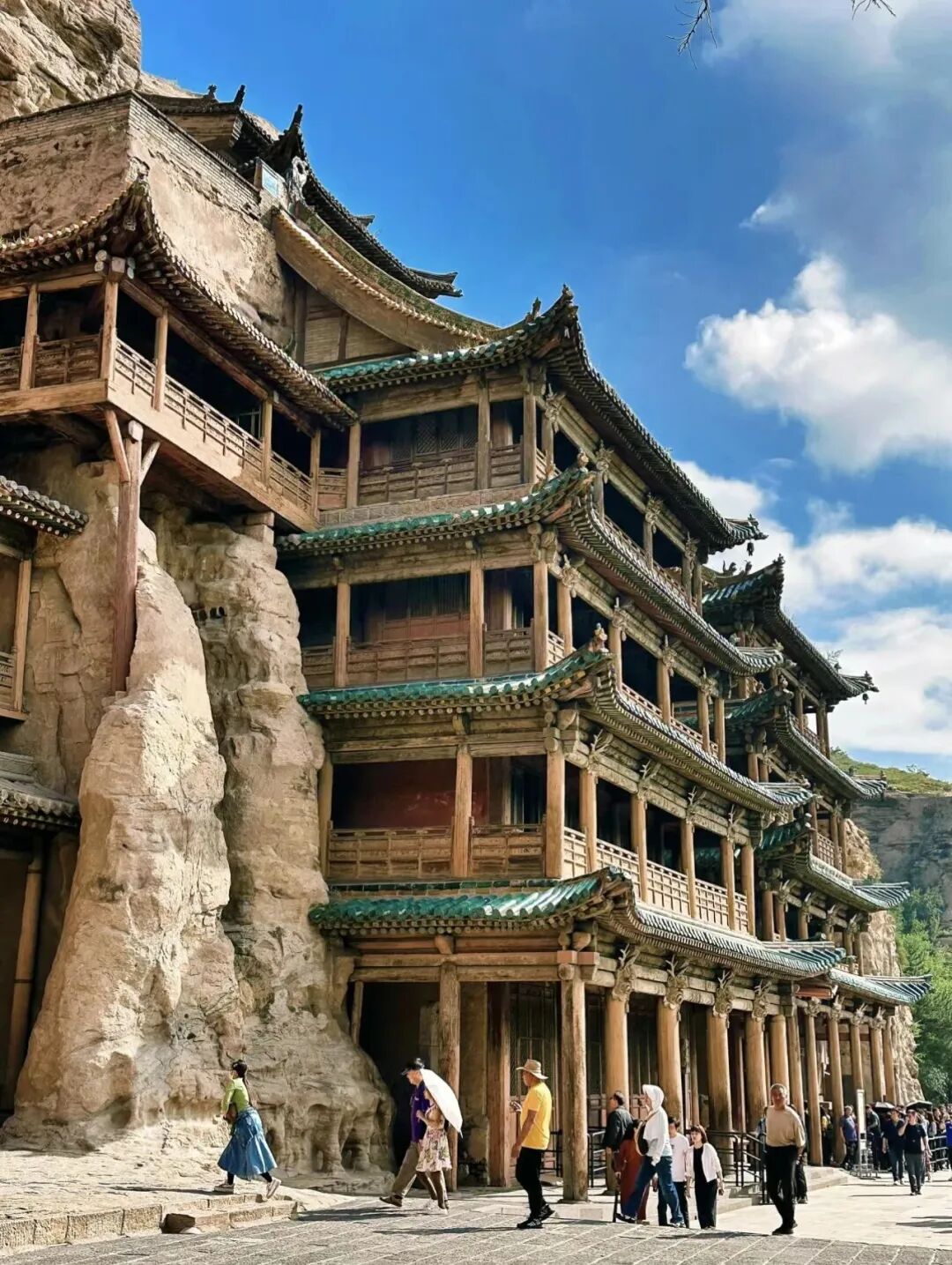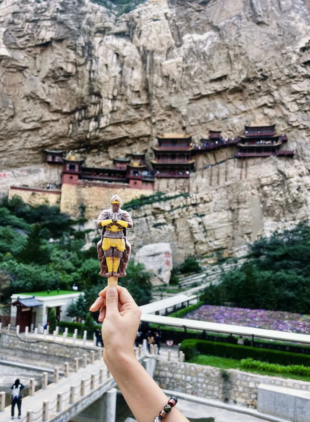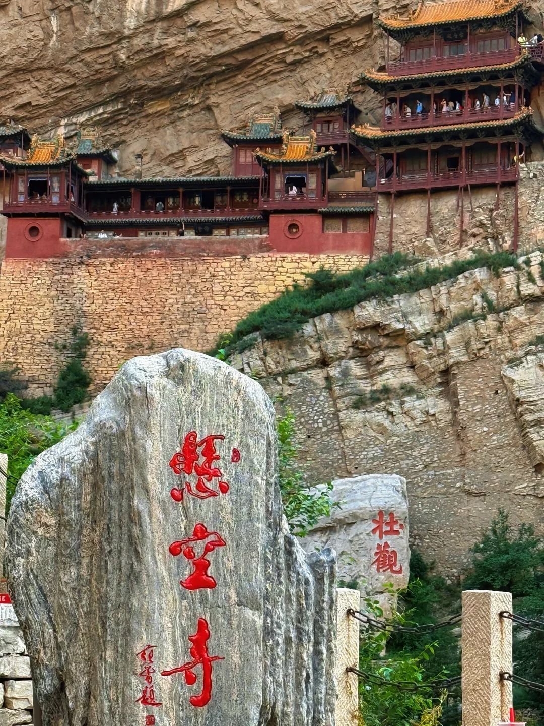 悬空寺 大同文创雪糕真的有点东西,“石屏千仞立,古寺半空悬,现存建筑是明清修缮的。登临要排队缓慢的向上,栈道很窄,上为木栈道,下为石栈道,属于全木质榫卯结构,并不是靠几十根木柱支撑,而是以插入岩壁的横梁为基础,同时与回廊栏杆上下梁柱形成框架式结构,这就是千年不倒的秘密,悬空寺木梯上的莲花图案,寓意"步步登莲,吉祥如意"也是古诗一绝,也是罕见的佛、道、儒三教合一的寺庙。
