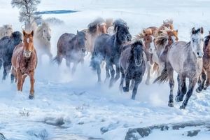 「万马奔腾」拍摄跑马是乌兰布统草原的特色之一,很多摄影爱好者拍过夏秋季节“万马奔腾”过河的壮观场景,“马踏水花”的照片令人印象深刻。而冬季里,在壮阔的雪原之上,近百匹马疾驰而来,马蹄扬起飞雪,在后面甩出一片白雾,其气势比之夏秋季节有过之而无不及。