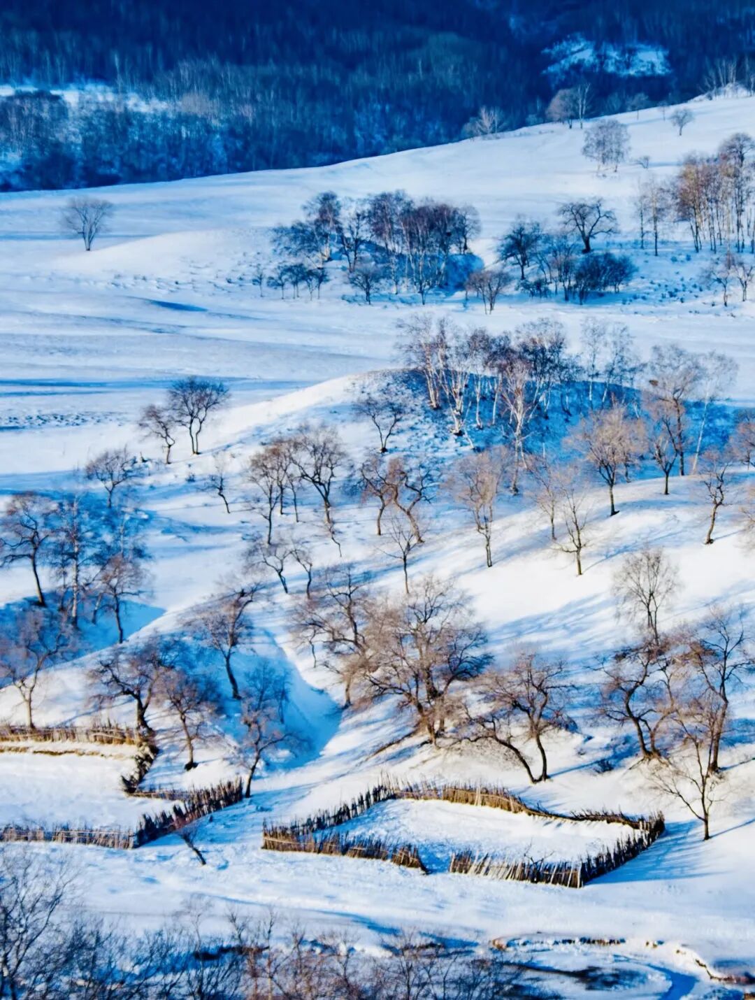 「 塞北雪乡 」「 鹰窝沟 」不输北海道!酷似魔界!超小众冬季旅行地!塞北雪乡,抬眼望连绵不尽的小山峦,行走在一望无际的雪原,静谧、广阔、唯美,在这里,时间静静流淌,我们自由自在。山岭连绵,树木分布有序。早晚时分,马群和骆驼群穿越雪地,构成独特景观。