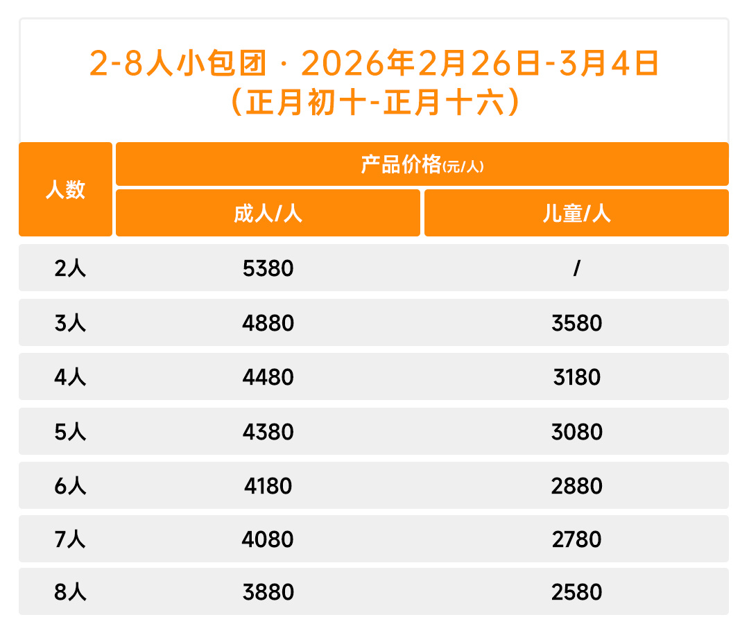 2-8人小包团:一单一团随时出发;