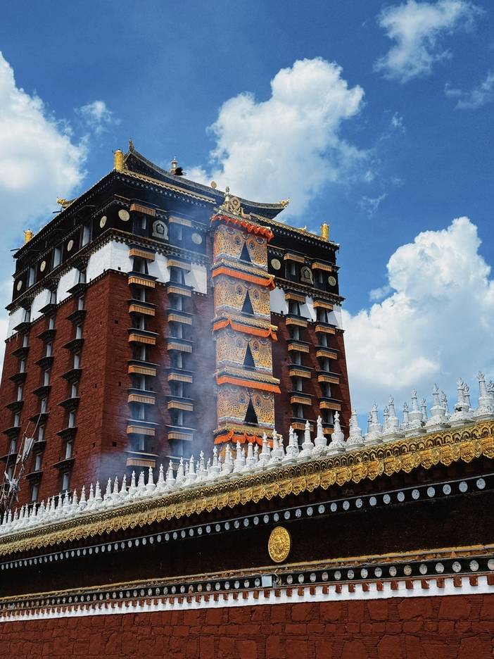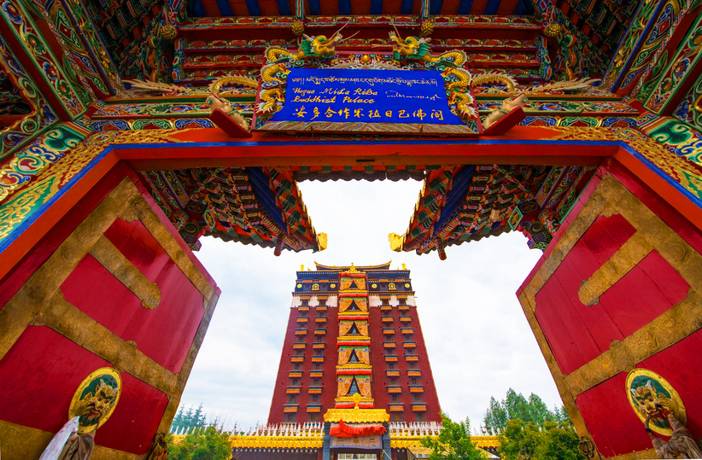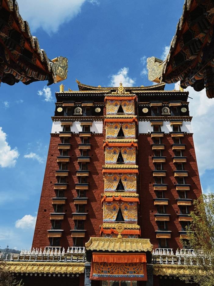早餐后,我们集合乘车前往安多合作【米拉日巴佛阁】(行程约:230KM,车程约3小时,游玩约1小时),佛阁共有9层,每一层都是一个单独的佛堂,每一层代表着不同的教派,供奉的主尊均不相同。所以又名“九层佛阁”,是为藏传佛教白教的代表建筑,为纪念米拉日巴而修建的佛阁。米拉日巴是藏传佛教史上最富传奇色彩的一位大师,是噶举派(白教)创教者之一。外观宏伟,色彩浓烈,内部金碧辉煌,绘满了壁画,阁外设有转经筒。在整个藏区共有两座米拉日巴佛阁,合作的这座便是其中之一。