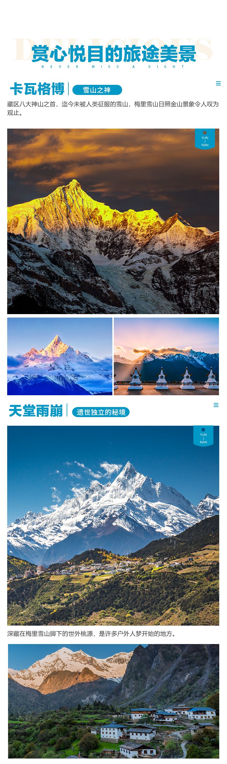 傍晚欣赏雪山落日美景,这时“卡瓦格博”梅里雪山就在你面前。此时正是拍摄梅里雪山的落日余晖,霞光万丈美景的好时候。您可以尽情撒野,疯狂拍摄享受此刻的美景盛宴!