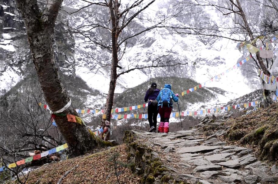 这里可以观看神女峰和五冠峰的全貌,更重要的是这里是朝圣者接受洗礼的地方,只有接受过神水的洗礼,整个朝圣之旅才算是完整,身体和心灵都得到净化,而后我们将原路返回雨崩村客栈休息。
