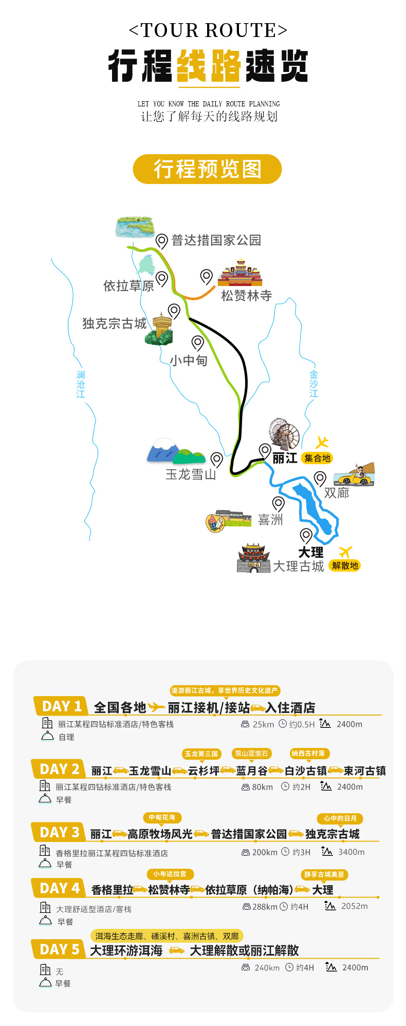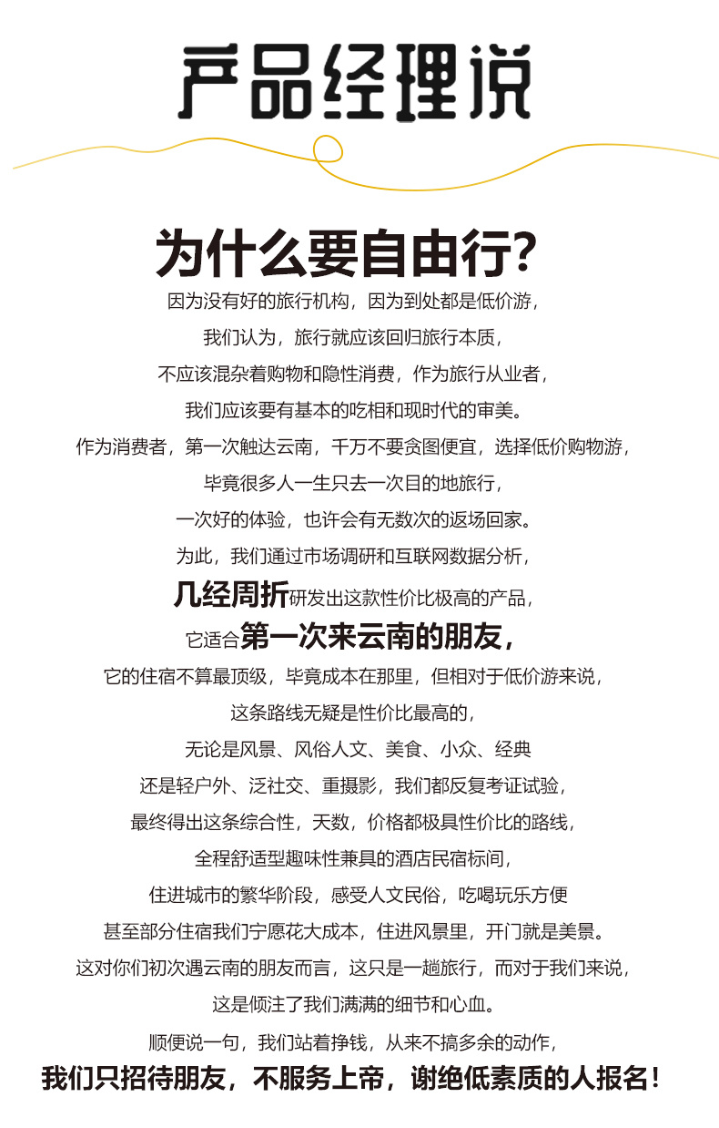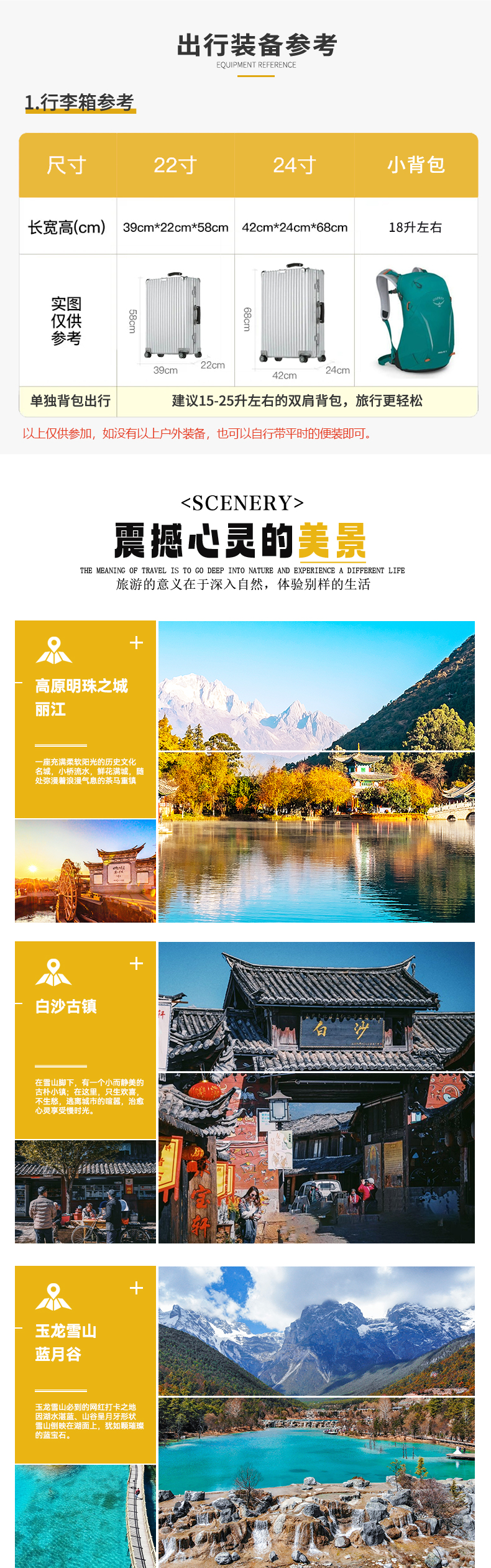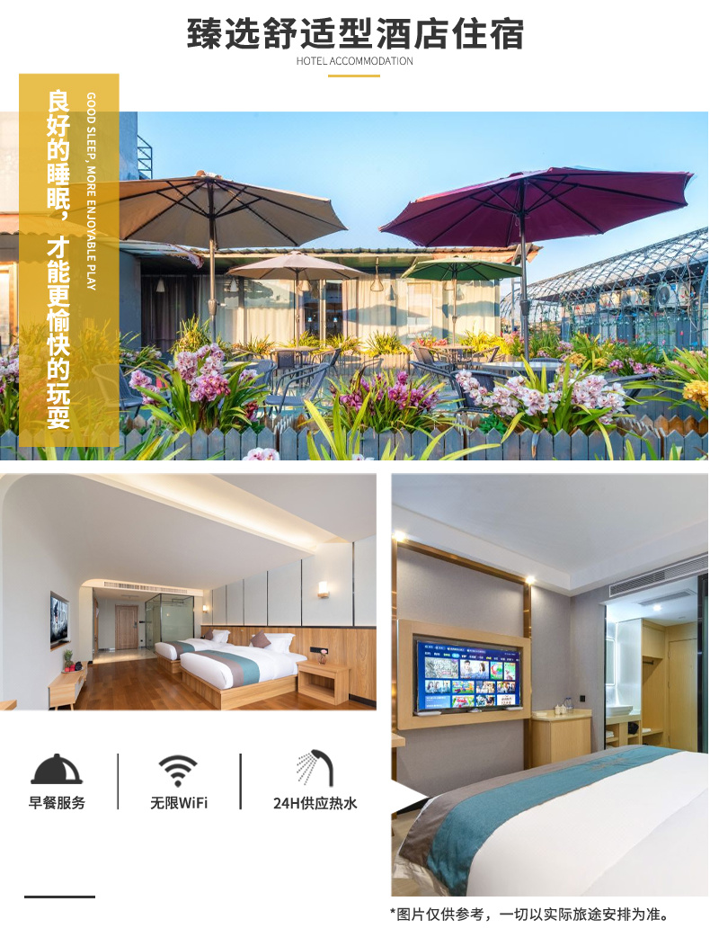 ▷交通:不包含各地到达丽江集散的往返大交通费用(如:机票和高铁火车票等,提前预定通常折扣都会很低);