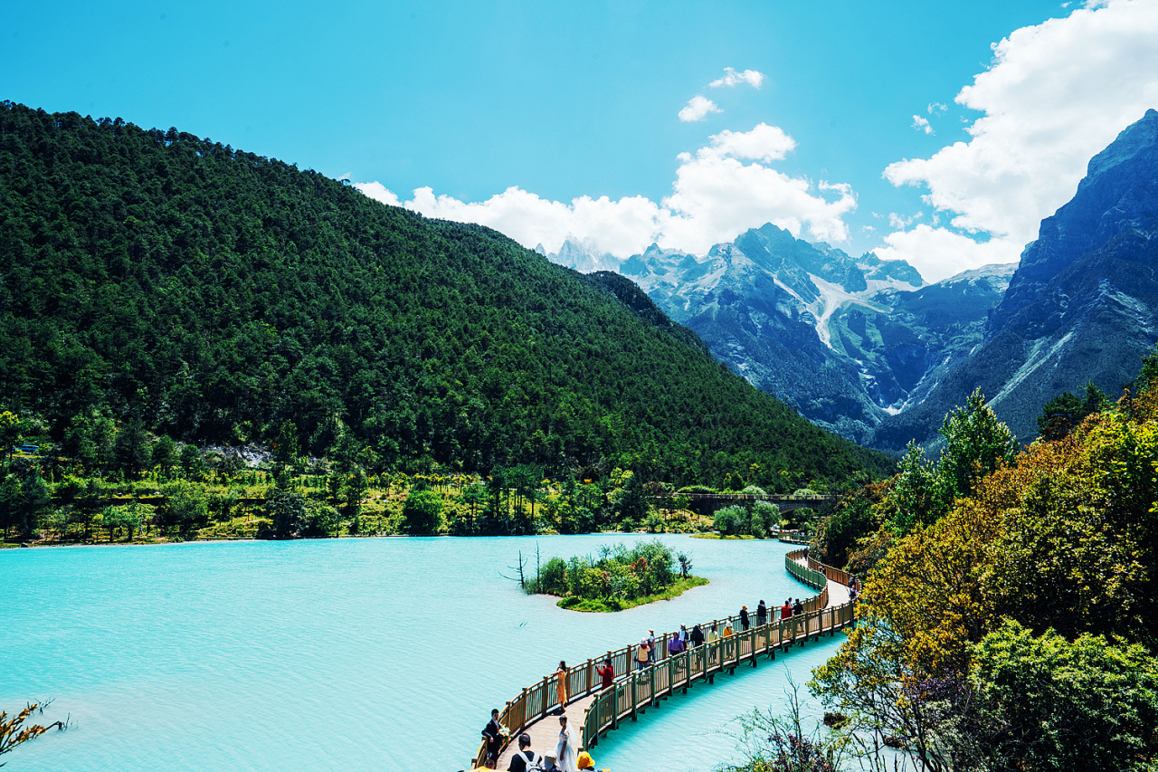 早餐后前往丽江国家5A【玉龙雪山】,约1小时抵达丽江玉龙雪山风景区。进入高原牧场甘海子,游览甘海子后我们在景区内用午餐。中餐后乘索道到达【云杉坪】。又名殉情谷,本地人称之为玉龙雪山第三国度。海拔约3240米,一块隐藏在原始云杉林中的巨大草坪,在此观赏玉龙雪山是最佳位置。随后游览【蓝月谷】景区的玉液湖、镜潭湖、蓝月湖、听涛湖、白水河,这里也是玉龙雪山景区内必打卡的景点之一。