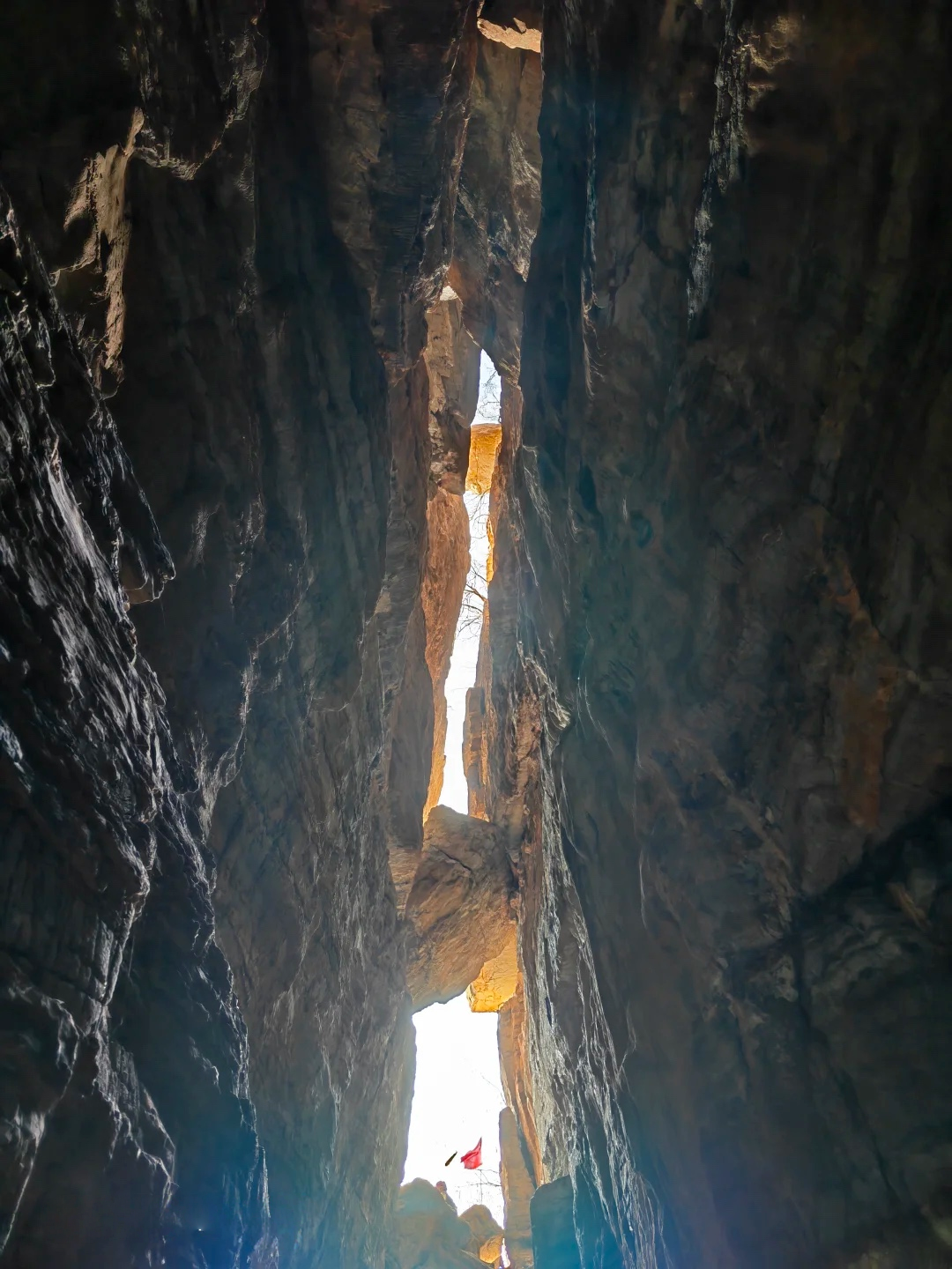 裂缝奇观300米天然断层峡谷,抬头只见“一线天”,岩壁褶皱如巨龙脊背!徒步在大裂缝与大险洞之间穿梭,感受着大自然无与伦比的创造力。自然镌刻的大地裂痕,裂缝两侧,是近乎垂直的岩壁,脚下怪石嶙峋,徒步需小心。