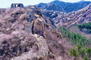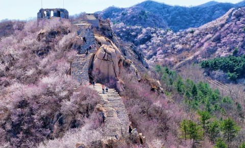 春天满山遍野山桃花还可以攀登绵延起伏野长城