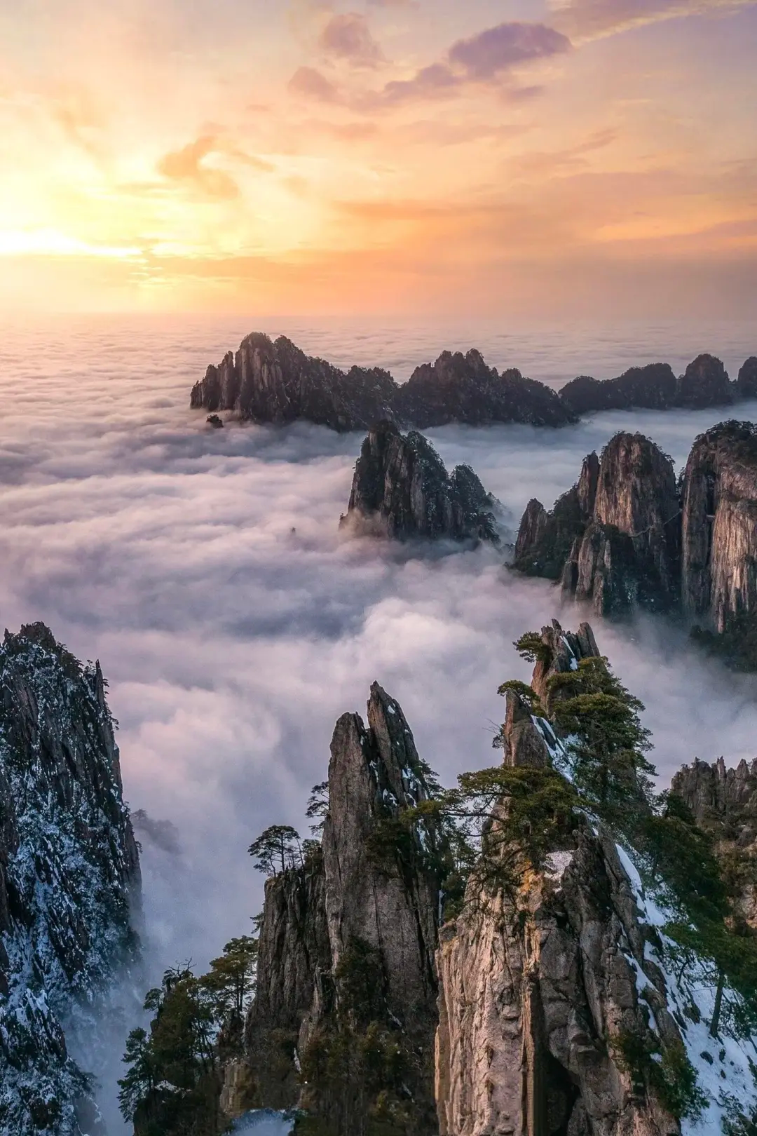 - 全天|登天下第一山の黄山-排云亭—西海大峡谷—天海—飞来石—光明顶—鳌鱼峰—莲花峰—迎客松—天都峰—慈光阁。下山乘车前往黄山屯溪。