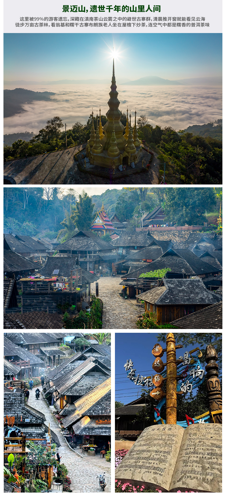 早晨天气好的话可以拍摄到【景迈山云海】壮观的云海盘踞在景迈山半山腰,拍摄完云海后适时离开景迈山,前往西双版纳勐海的隐秘小众景点—【景真八角亭】,寻找失落的佛国,景真八角亭是中国唯一保存完好的南传佛教戒堂,其价值远超建筑本身。汉式砖基+傣式木构+缅泰装饰,见证滇南与东南亚的文化网络;随后前往西双版纳【景洪】结束难忘的虫谷之旅。