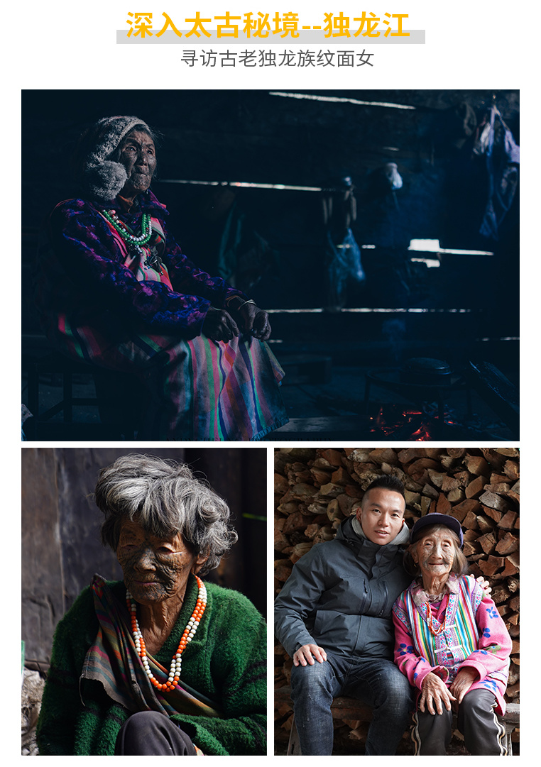 下午抵达独龙江乡景区内入住当地舒适酒店,这里碧绿江水如翡翠,把高黎贡山和担当力卡山切开,把这片土地割裂为与世隔绝的秘境,两岸原始森林覆盖,云雾缭绕如仙境。随后前往上游游览,途经龙元村,迪政当寻访独龙族即将消失的纹面女。【独龙族纹面女】目前仅存不到十人,成为最后的活化石,脸上青蓝色纹路是蝴蝶与灵魂的契约,也是消逝中的文明符号。傍晚返回酒店入住,晚餐在当地餐厅结伴享用,夜晚伴随峡谷河流的音符和星空入眠。