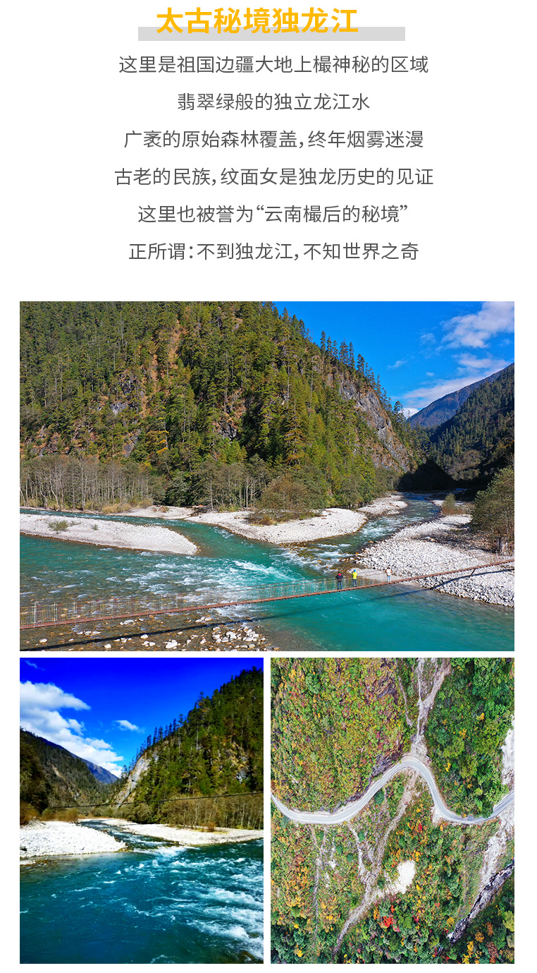 晚,老姆登景区优选舒适酒店/客栈1晚,独龙江景区优选舒适酒店/客栈1晚、丙中洛景区优选舒适酒店/客栈1