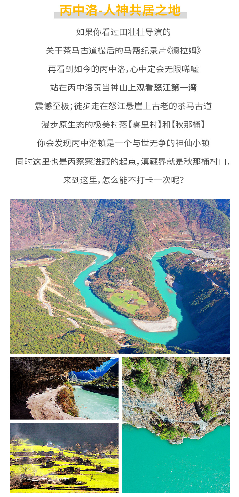 随后前往贡当神山,这里是去丙中洛却极少数来到的地方,这里我视野绝不会让你失望浊。当你登上山顶停车,漫步前往至观景台,俯视怒江第一湾一览无遗,侧面俯瞰丙中洛全景,街道,教堂,寺庙,梯田尽收眼底。下午适时前往丙中洛镇入住当地舒适酒店,而这个镇子自古以来都是热闹非凡,古代茶马古道重要驿站,现在219滇藏新通道【丙察察】起点,络绎不绝的进藏游客都在此中转。晚餐大家结伴在街道里寻找当地特色美味,夜晚伴着仙境小镇的星河入眠。