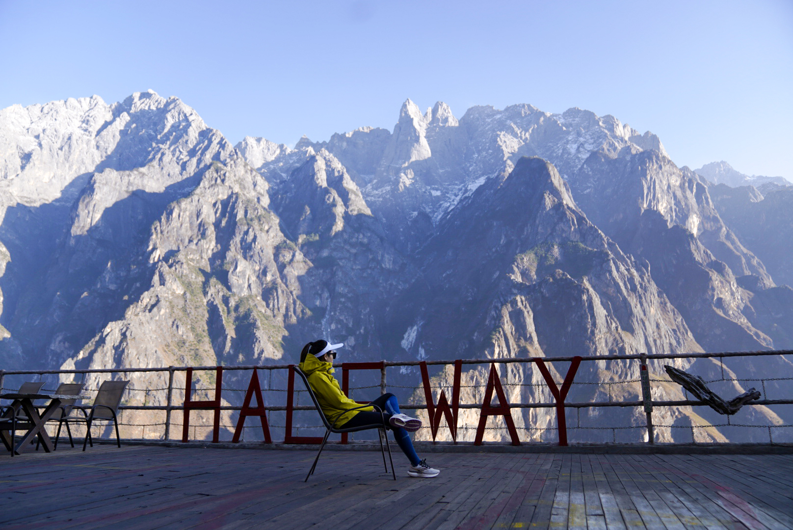 抵达虎跳峡高路后,我们选择高路精华段体验一下,打卡传奇美景"halfway"爽死你阳台,和龙洞瀑布,如果不想动的伙伴,可以在爽死你阳台发呆,听音乐,喝咖啡,烤太阳,这也是一种不错的旅行方式。我们在此逗留约2小时左右,统一乘车返回丽江结束难忘的三江奇观之旅,期待下次途中相见。