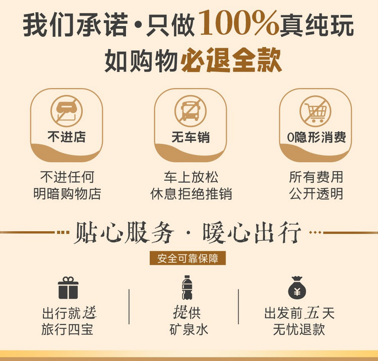 *无自然单房差:全程无自然单房差,单个报名默认同性别拼房,拼房不成功,我们来承担费用。
