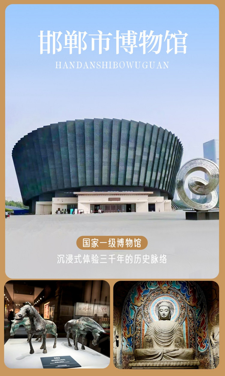 早餐后出发,前往国家一级博物馆-【邯郸市博物馆】。 邯郸市博物馆是国家一级博物馆,以酒樽为核心,串联起邯郸从战国到汉代的辉煌历史,是理解“成语之都”“赵文化”不可或缺的窗口。常设有“甘丹风华—邯郸历史文化”、“邯郸古代石刻艺术”、“方圆世界—中国历代钱币”、“磁州窑瓷器”四个常设展厅。这里有很多有趣的文物,大家在探索的同时可以找找看~