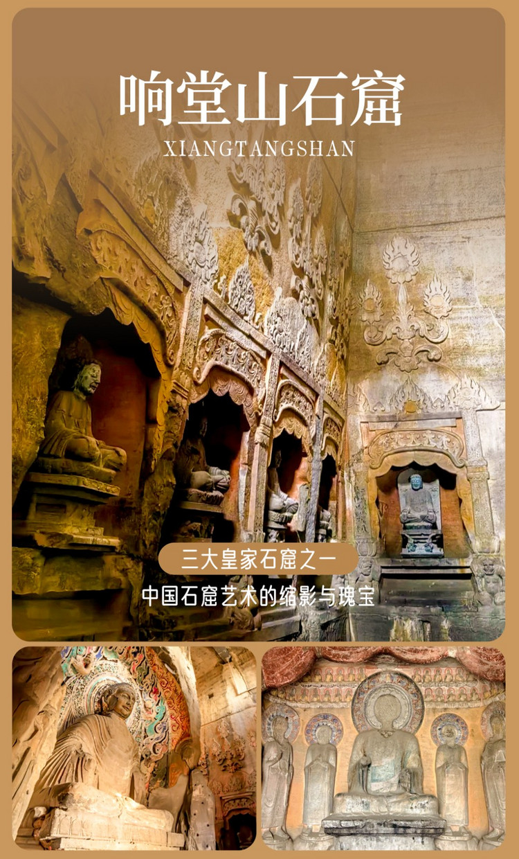 早餐后,我们前往”中国第五大石窟“磁县【响堂山景区】。你知道吗?在邯郸峰峰矿区的鼓山深处,藏着一处比敦煌莫高窟还早200年的皇家石窟群——北响堂山石窟。这里不仅是北齐王朝的"皇家寺庙",更暗藏着北齐开国皇帝高欢的陵墓密码。站在13米高的三世佛前,触摸1400年前的帝王手笔,你才会明白什么叫"一眼千年"。