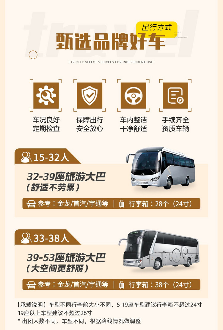 1、交通:北京往返全程旅游巴士包车费及过路费等费用(15%空座率);