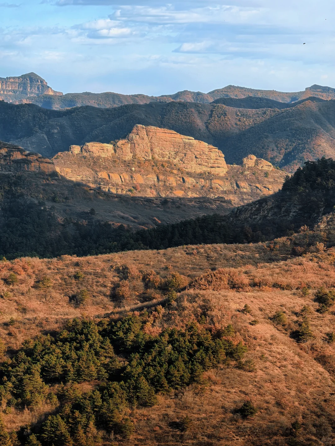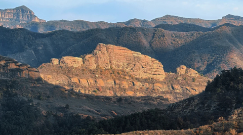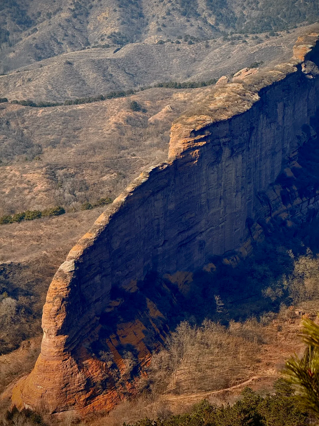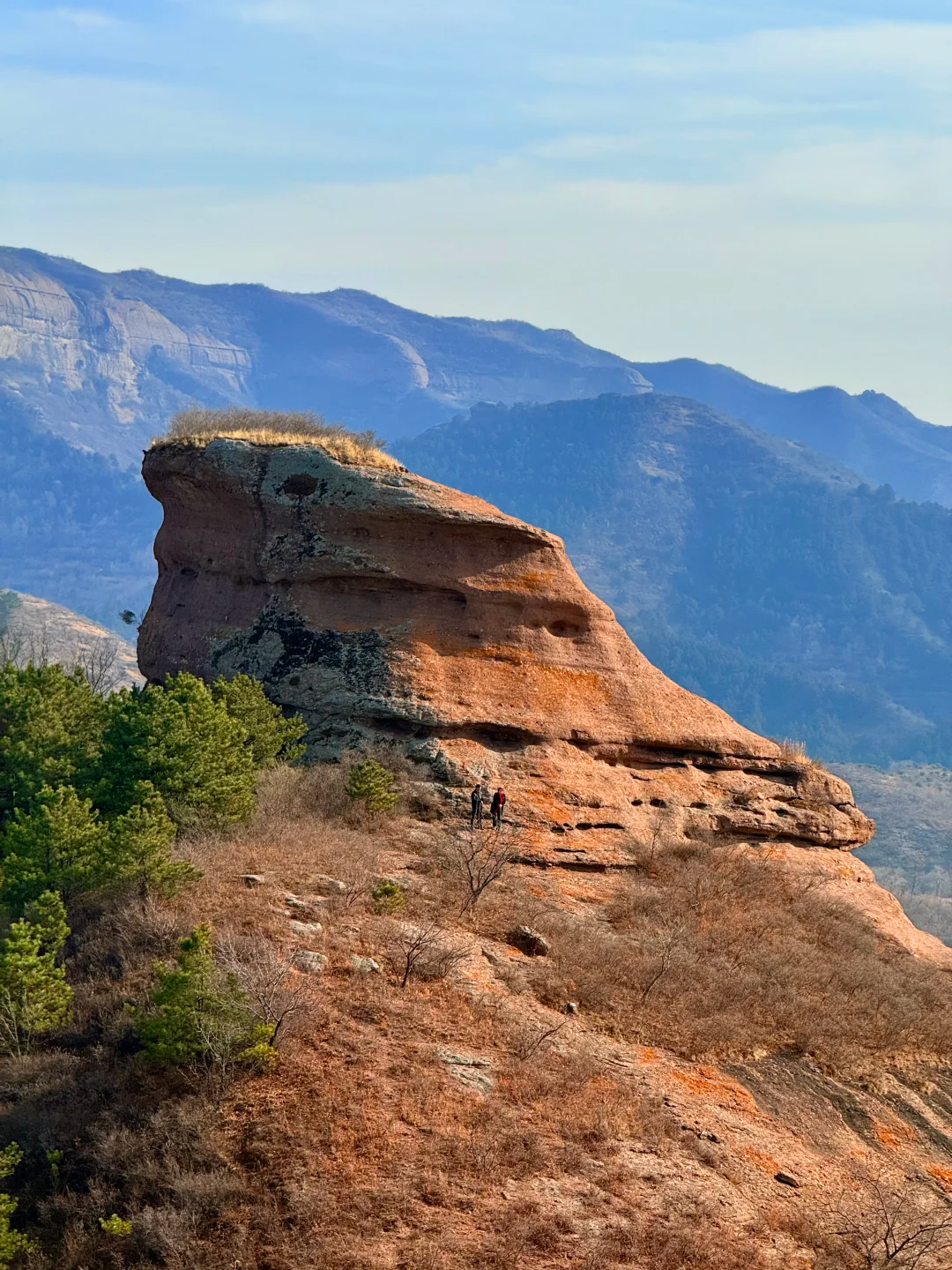 - 赤壁丹霞奇观:亿万年的风蚀水刻,造就了层叠如火焰的红色砂岩,阳光下仿佛燃烧的火焰山,随手一拍就是《国家地理》封面!每一步都踩在亿万年的地质史诗上,赤红岩壁与翠绿松林交织,像走进了一幅动态的山水画。登顶那一刻,风卷云舒,所有的疲惫都化作了对自然的敬畏。