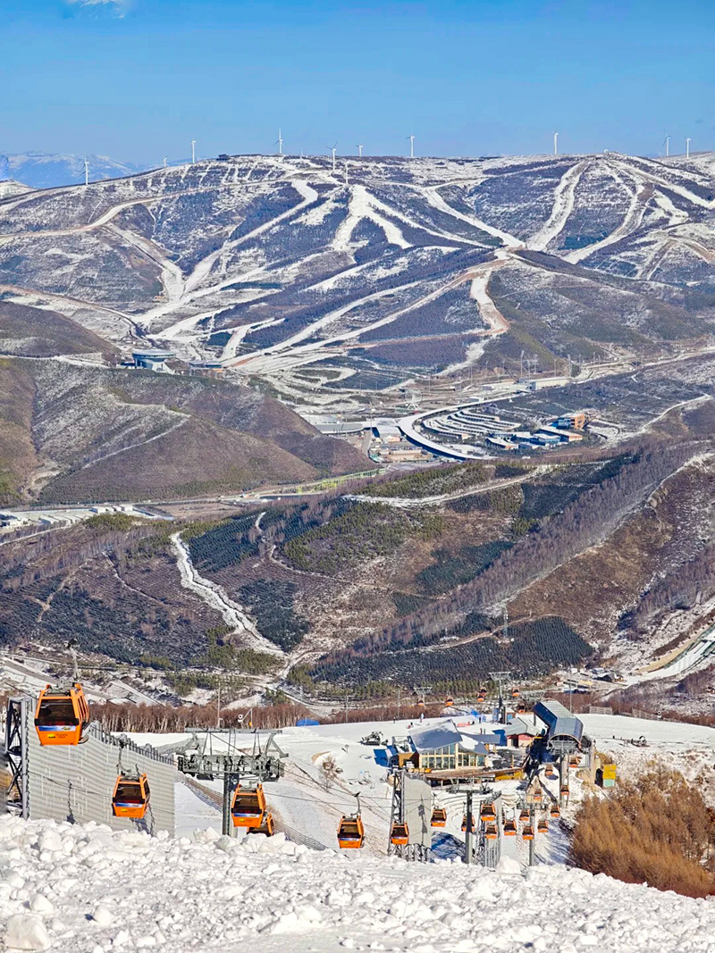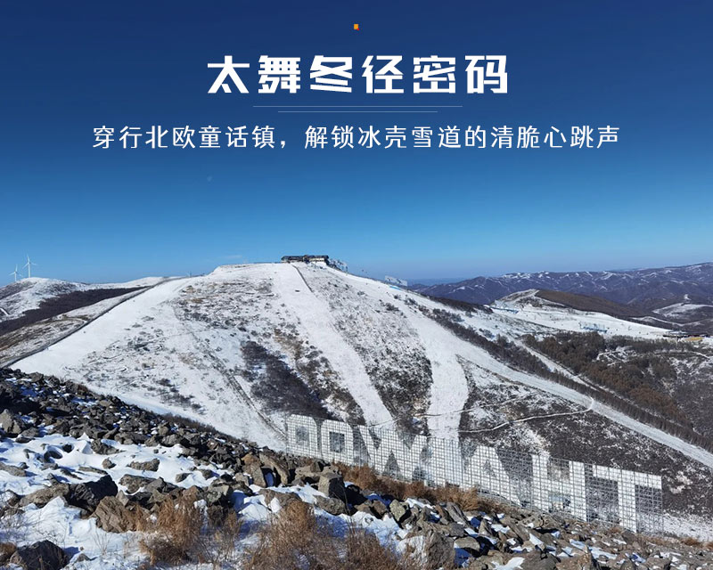 白色风力发电机组成的“风车森林”,巨型叶片切割寒风发出低沉鸣响,雪地上投射着流动的几何光影。可俯瞰明长城烽火台在雪原中蜿蜒的黑色剪影。途中经过复刻意大利帕罗尼诺风格的欧洲小镇,冬季的太舞小镇,远不止是滑雪胜地。用徒步的方式深入其中,你将以一种更缓慢、更深刻的节奏,听见雪落下的声音,触摸山脉冬季的脉搏,找到属于山野的宁静与澎湃。