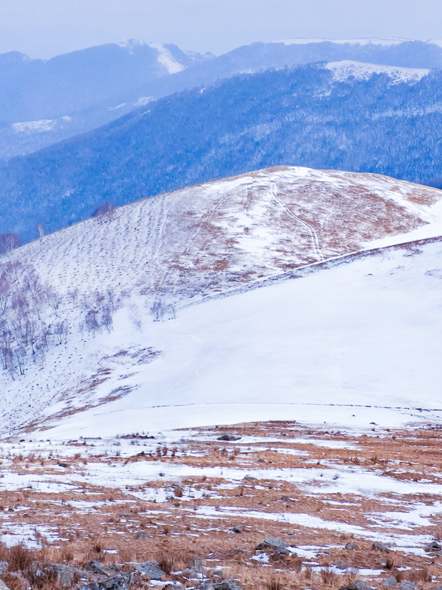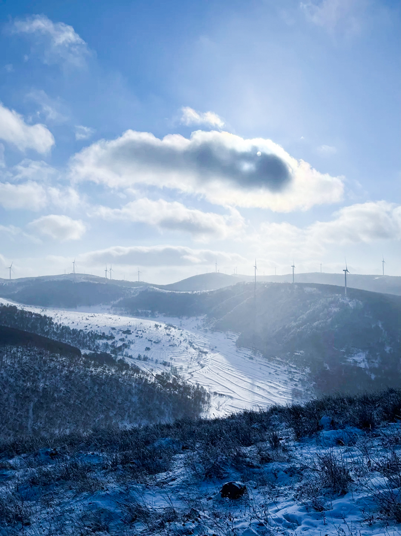 线路串联起玉石梁、大鹰梁、喜鹊梁几道山梁,穿越高山草甸、白桦林和风车阵,视野极为开阔。是河北崇礼一带备受户外爱好者推崇的经典徒步路线,尤其在冬季,这里化身为银装素裹的雪原仙境,景色壮丽,是体验冰雪徒步的绝佳选择。
