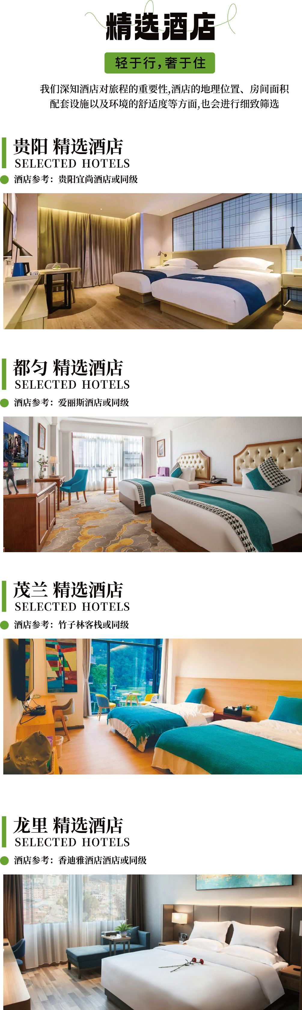 ➁ 住宿:贵阳1晚+都匀1晚+茂兰1晚+龙里1晚酒店(2人/间)
