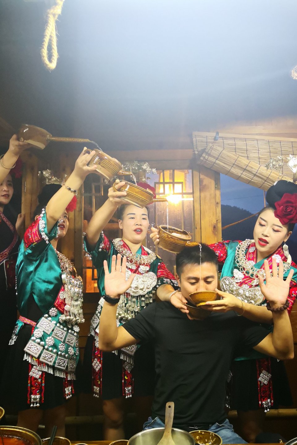 下午前往西江千户苗寨,入住在西江苗寨景区里面的客栈,晚上,万家灯火已然亮起,一起到观景台看万千灯火耀星辉;如果有兴趣的话,可以自费参加苗家长桌宴,苗家阿妹备好苗家长桌宴及香甜糯米酒,等侯着大家的到来,在盛装苗家姑娘的敬酒歌中,饮下一席“高山流水”,糯米酒虽甜,可不要多喝哟;