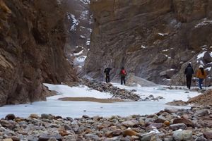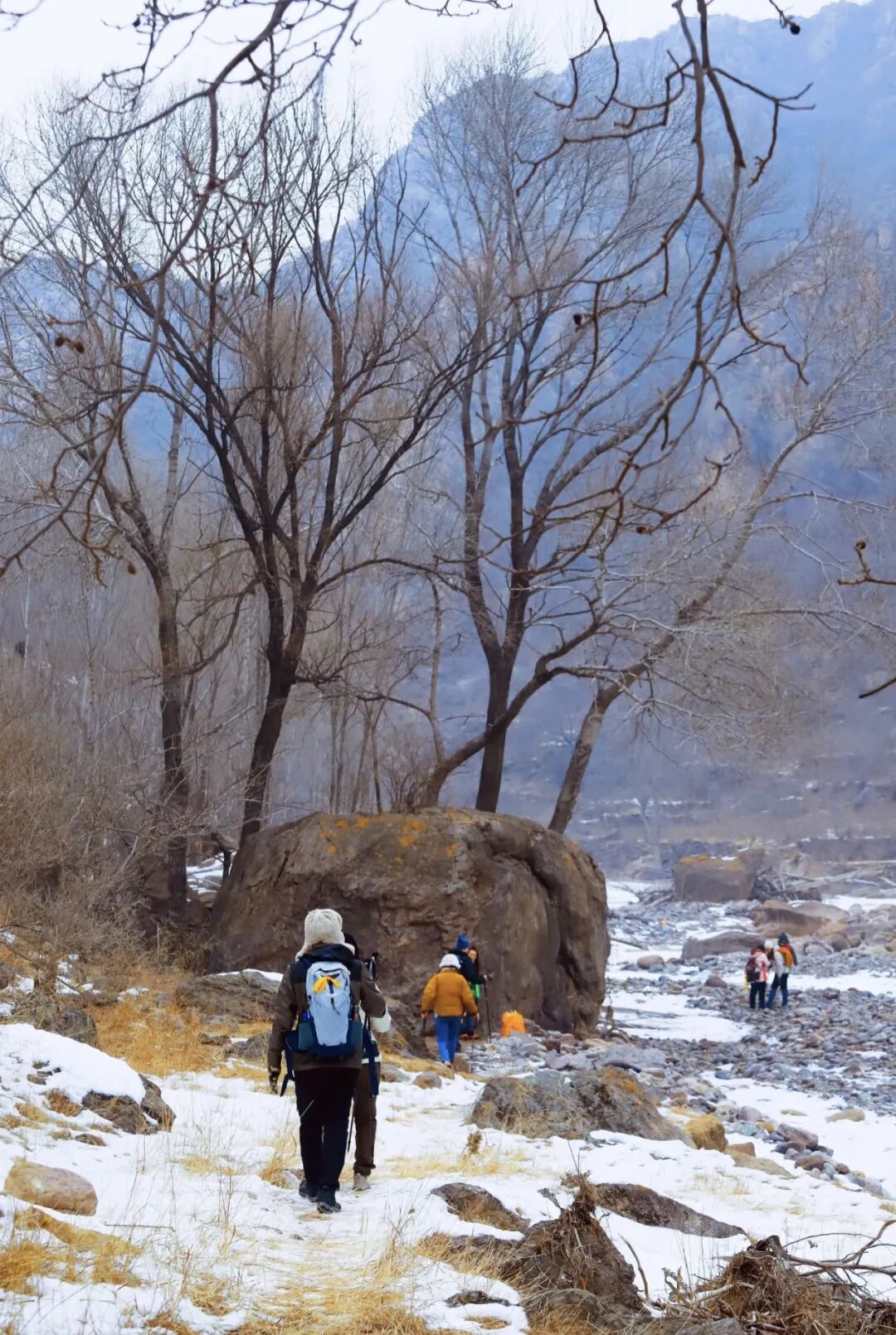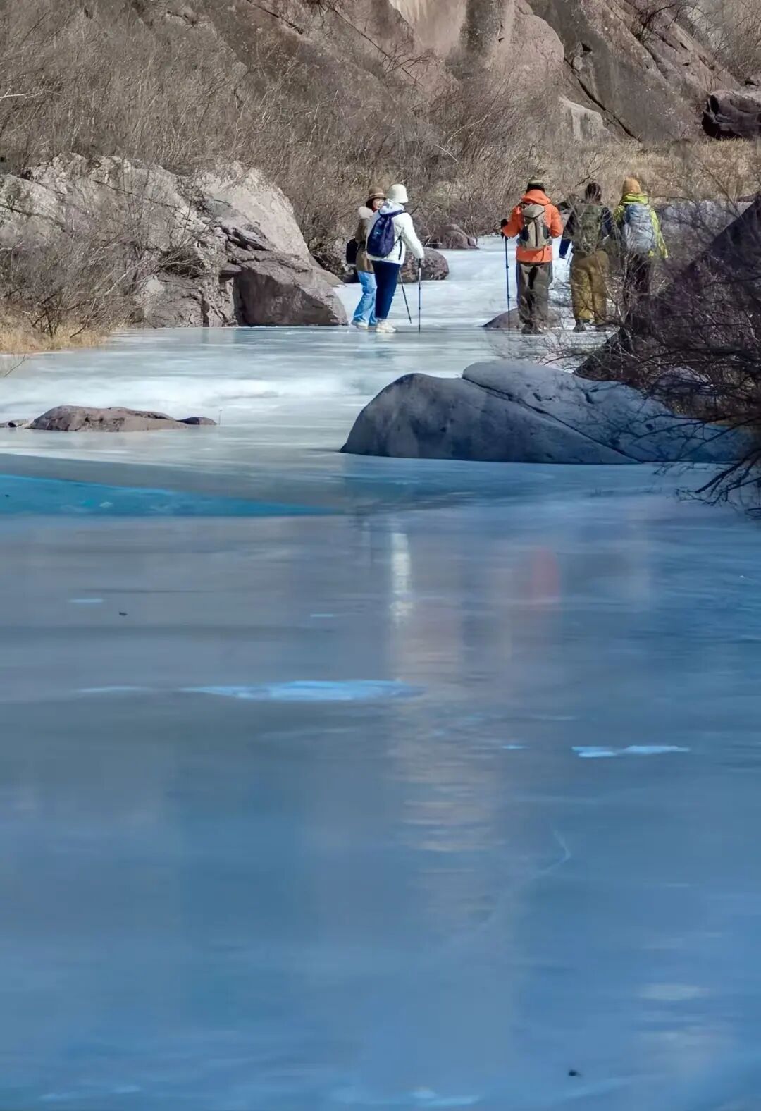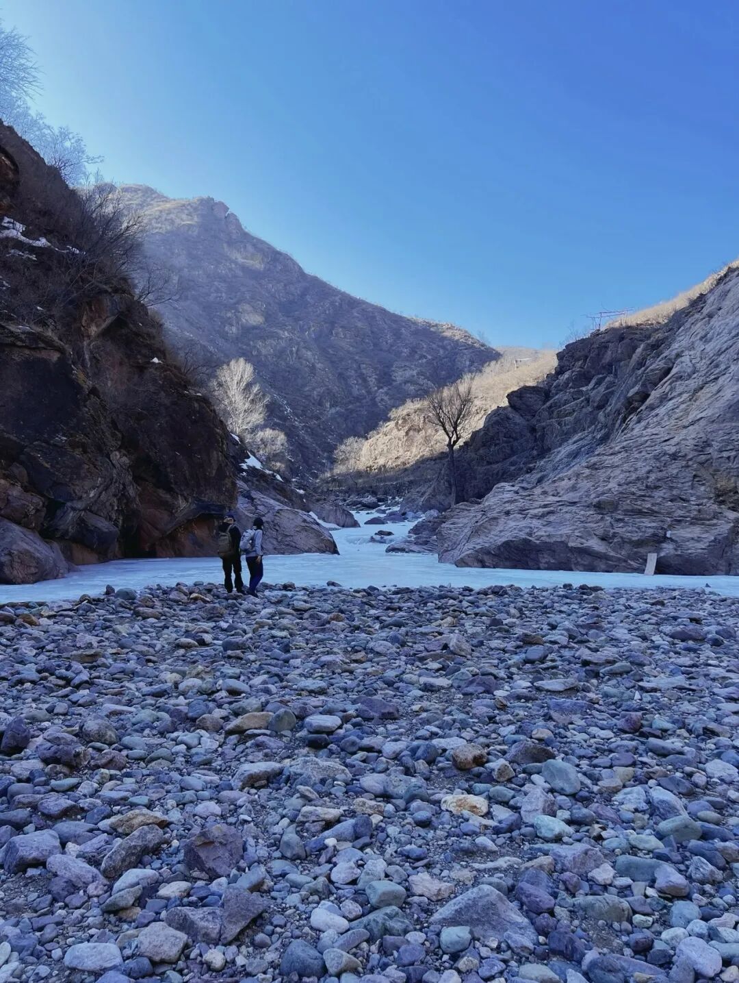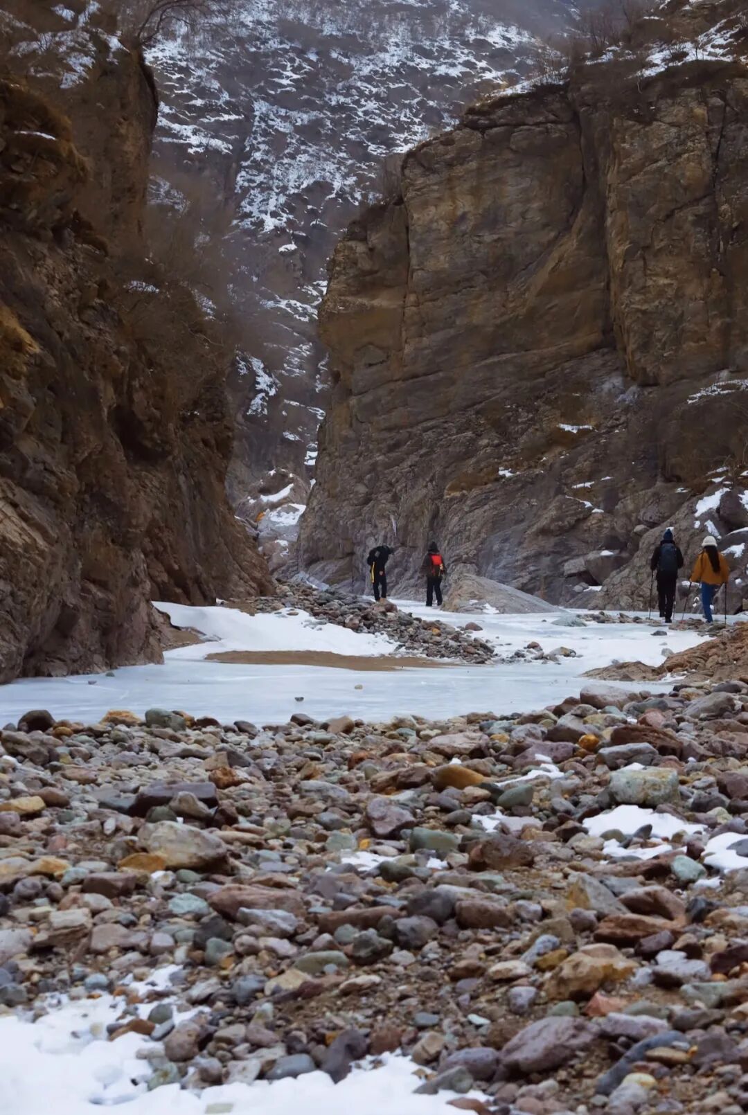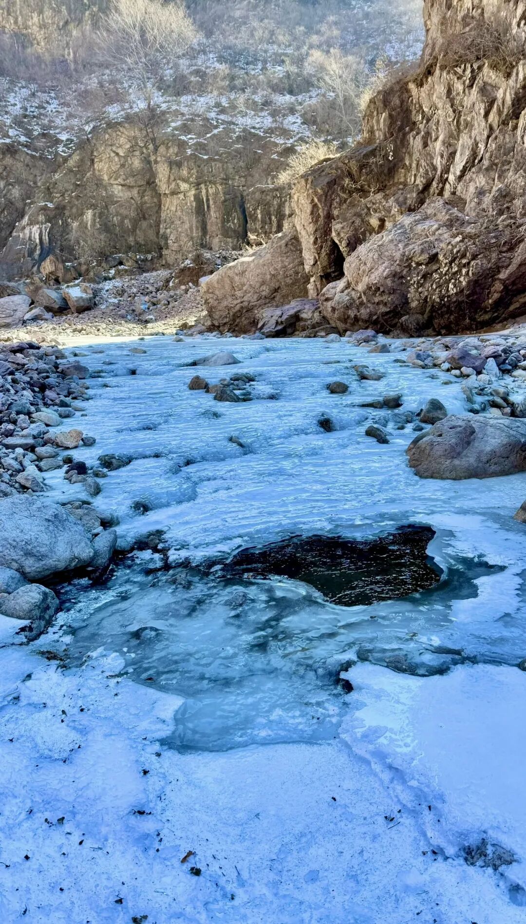 难度级别:本次徒步整条线路长约 11公里,累计爬升100米左右,线路成熟以河谷冰河路段、峡谷土石路为主,路线比较原始山路比较平缓,踏冰路段较多,强度难度适中,适合新人踏冰河体验乐趣。(冰爪必带)